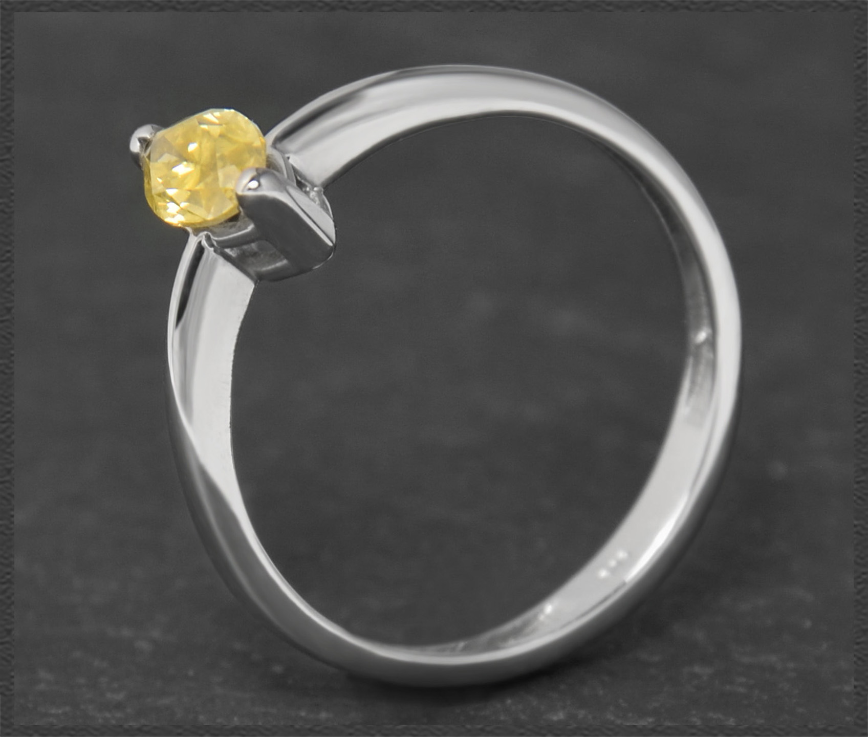 Fancy-cut (Fantasieschliffe) Diamanten beeindrucken durch außergewöhnliche Formen und eine spezielle Brillanz. Die zarte Ringfassung lässt den intensiv gelben Diamanten sehr schön zur Geltung kommen.