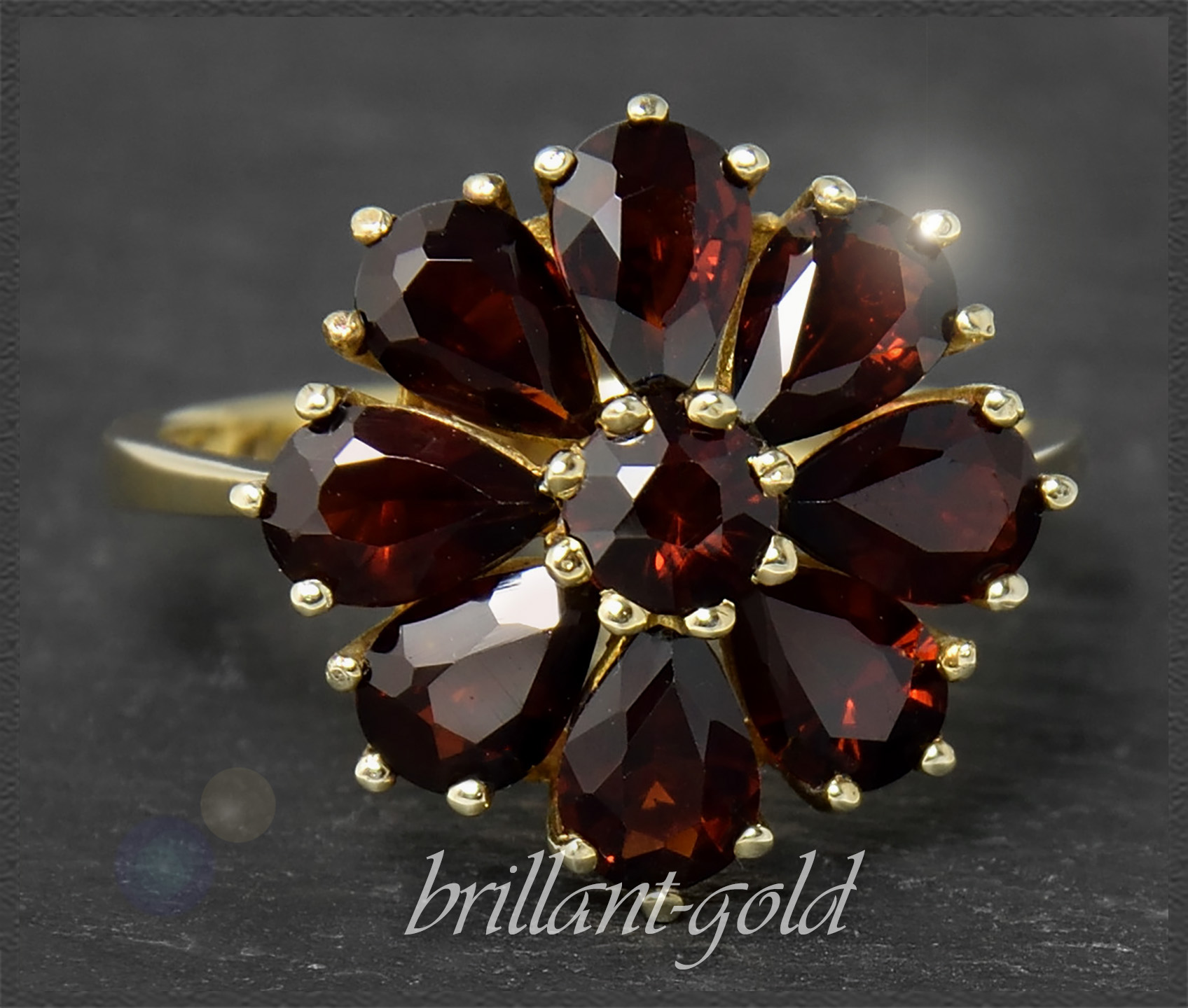 Ein ausgefallener Blumen Damen Ring, besetzt mit 5ct Böhmischen Granaten in hervorragender Qualität.