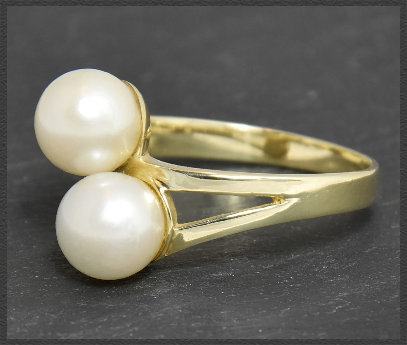 Ein zauberhafter Damen Ring mit zwei weißen 7,5mm Perlen.