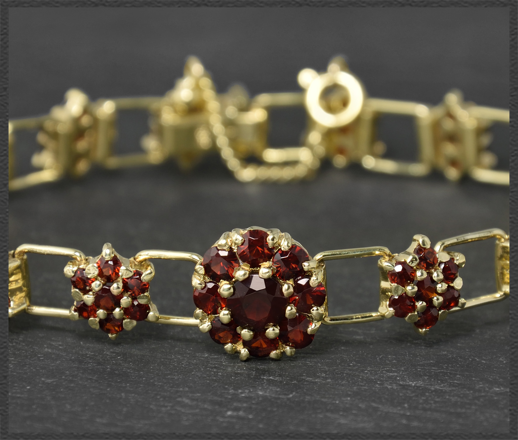 Vintage Gold Armband besetzt mit 7,90ct leuchtend roten Granaten.