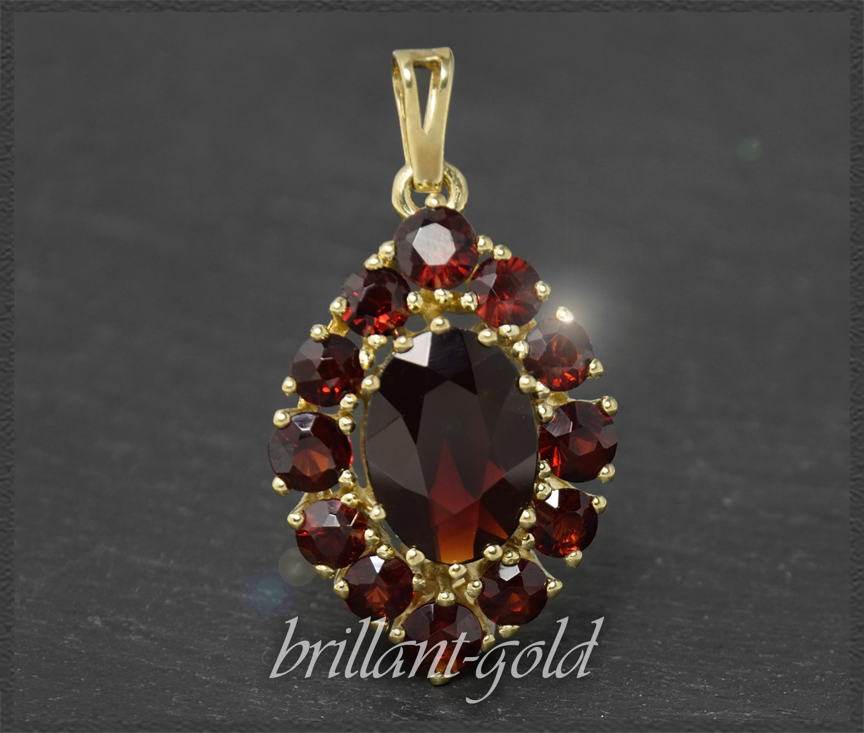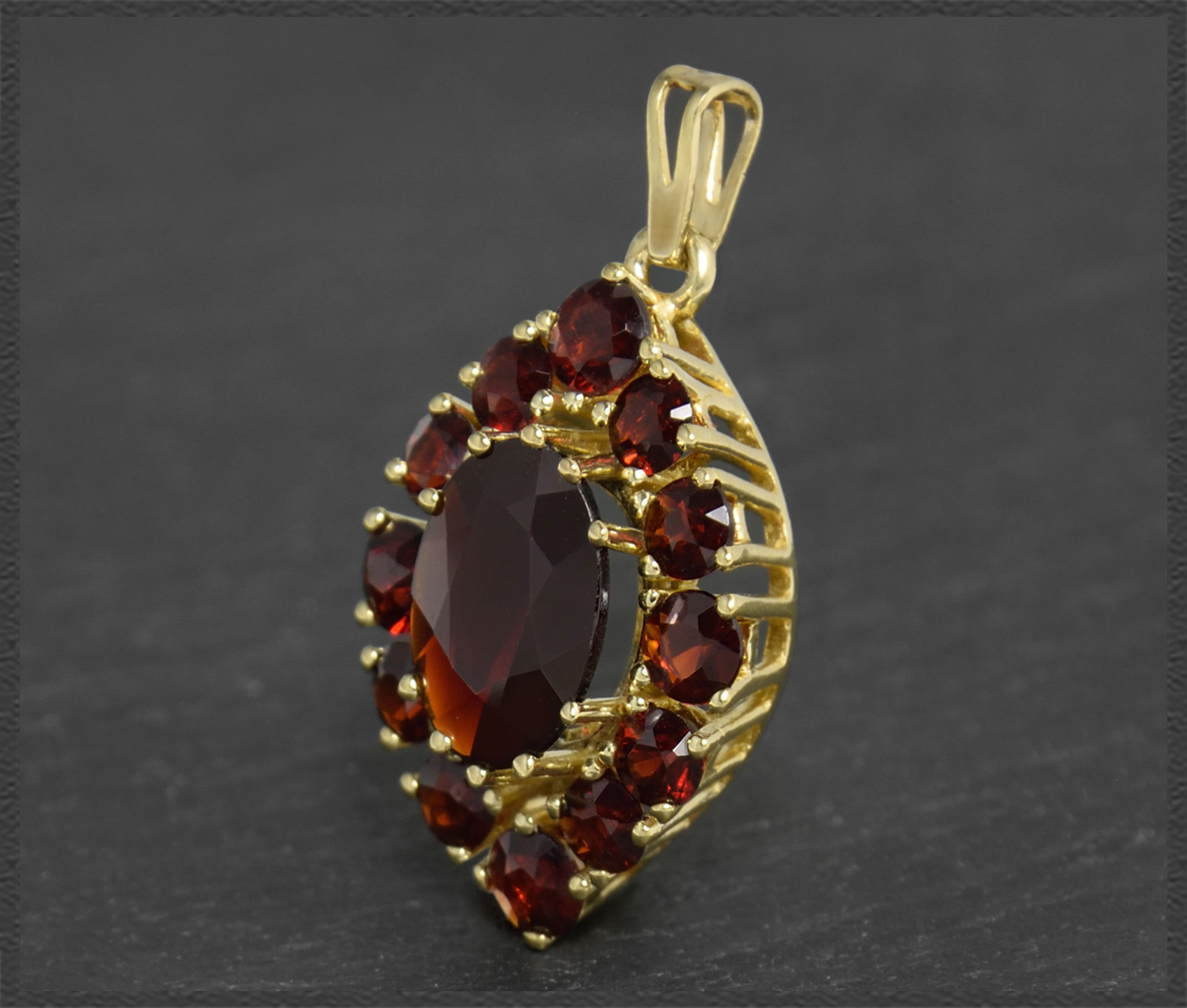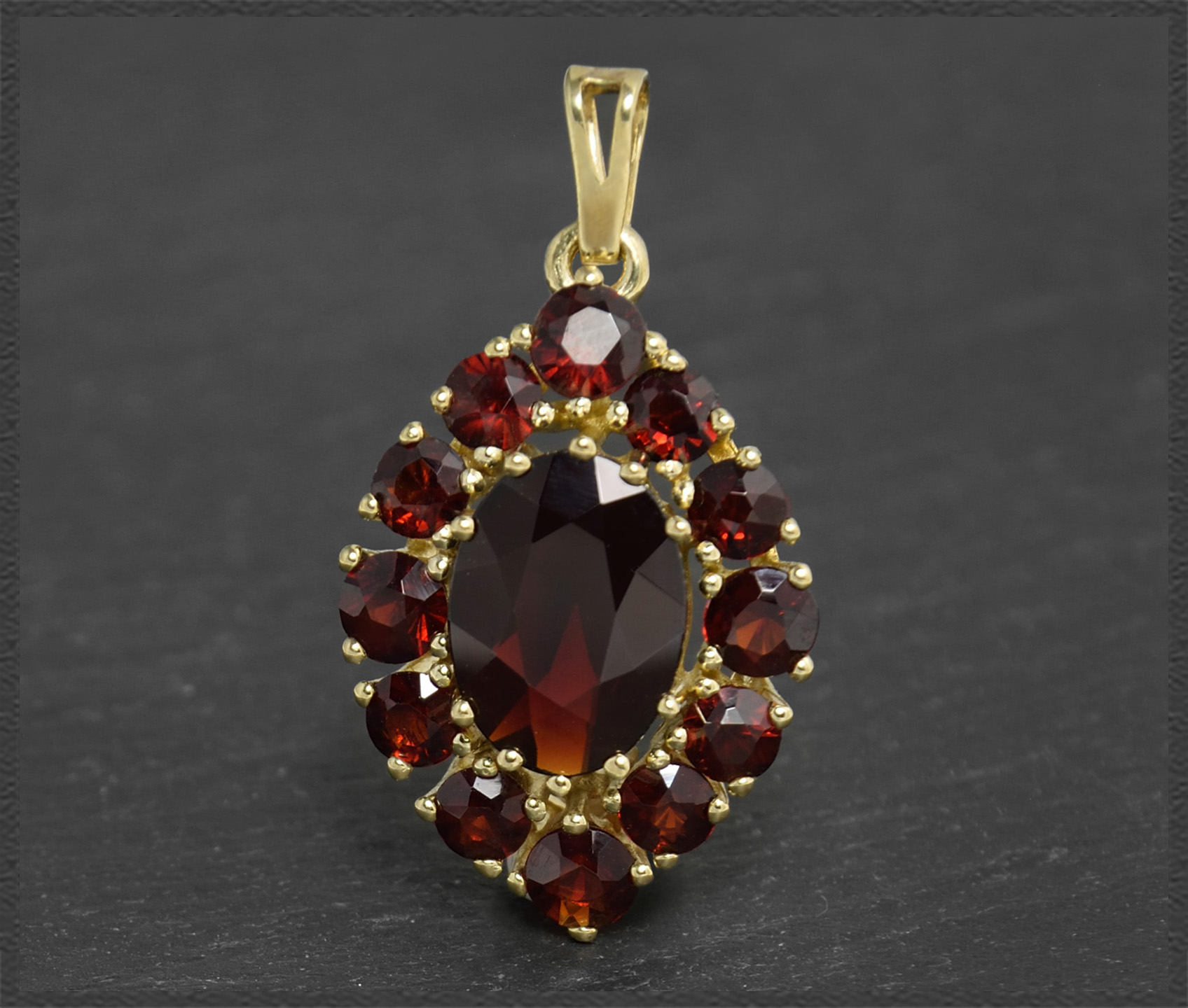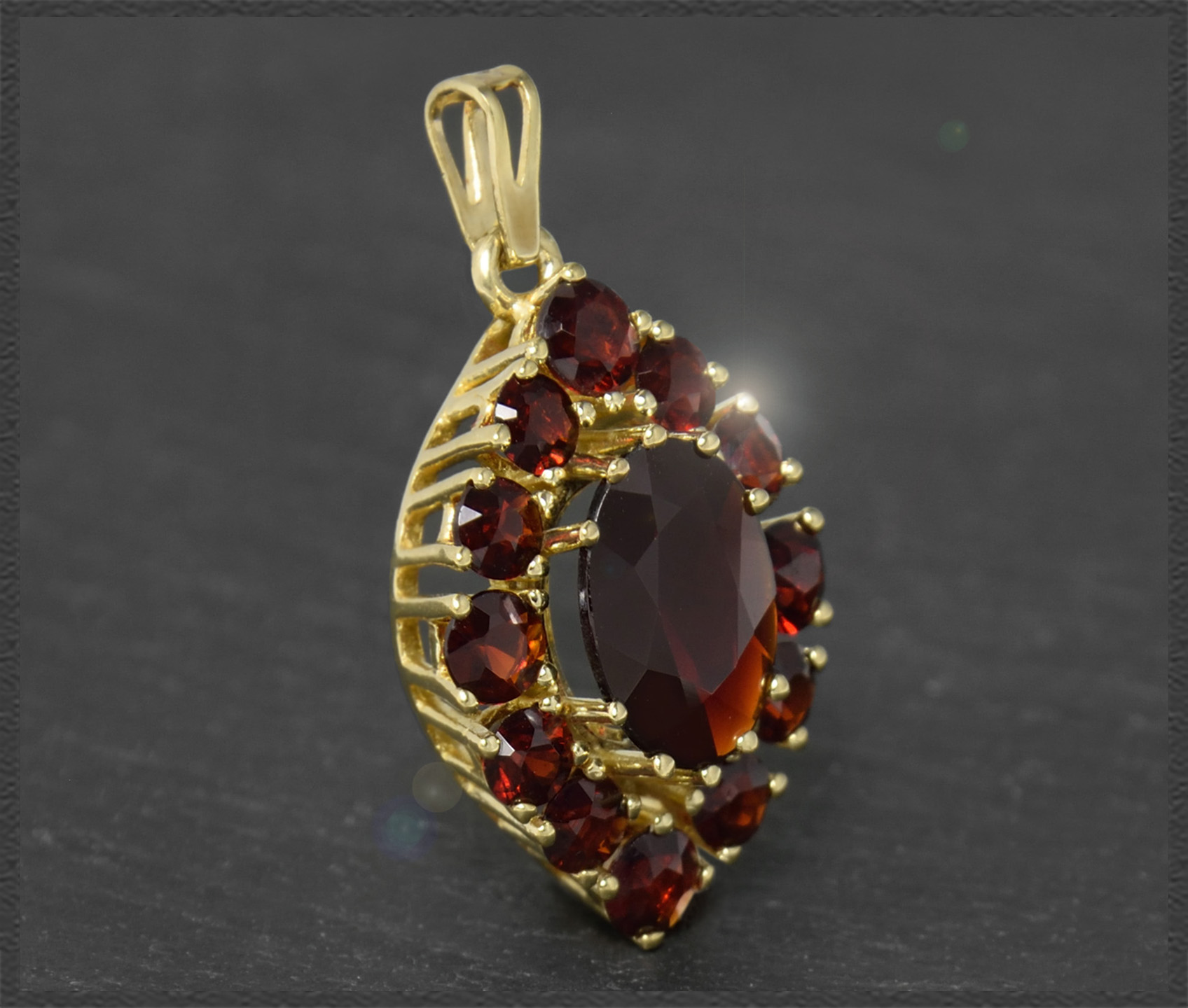 Vintage 5,70ct Granat Gold Anhänger von ca 1960 mit hochwertigen, intensiv roten Granaten.