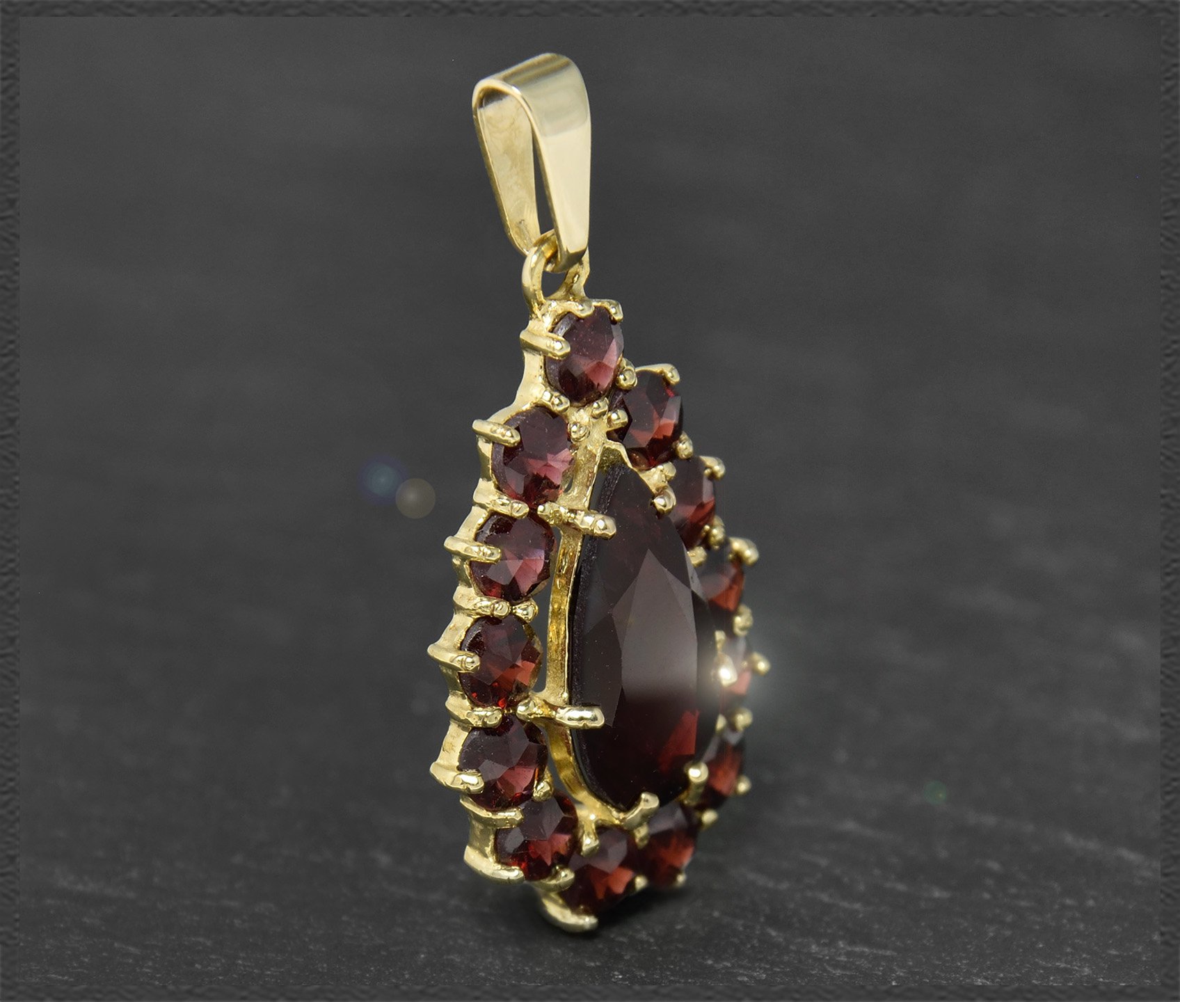 Vintage (um 1960) Granat Anhänger mit 7,80ct intensiv roten Granaten in Tropfenschliff und Rundschliff.