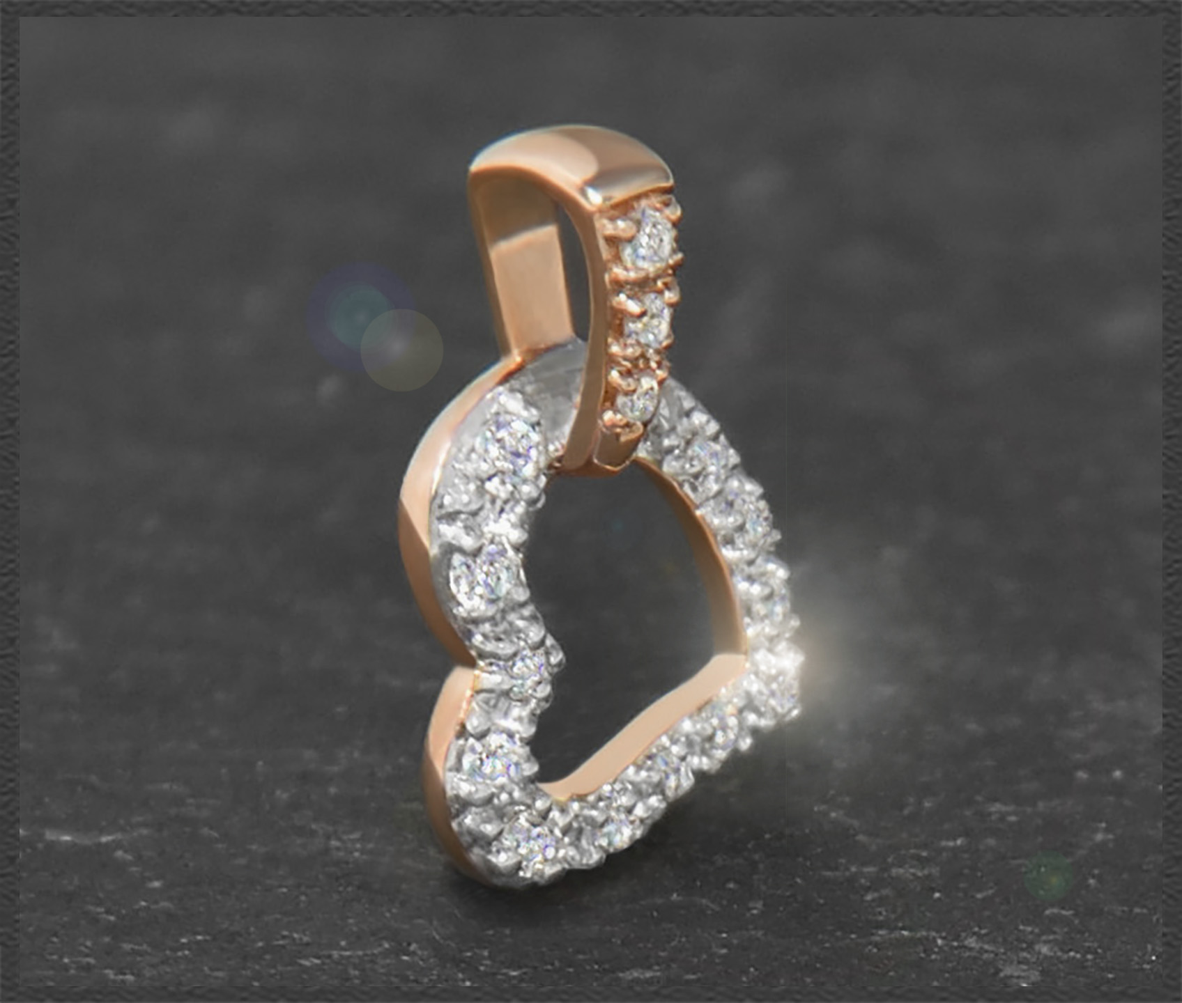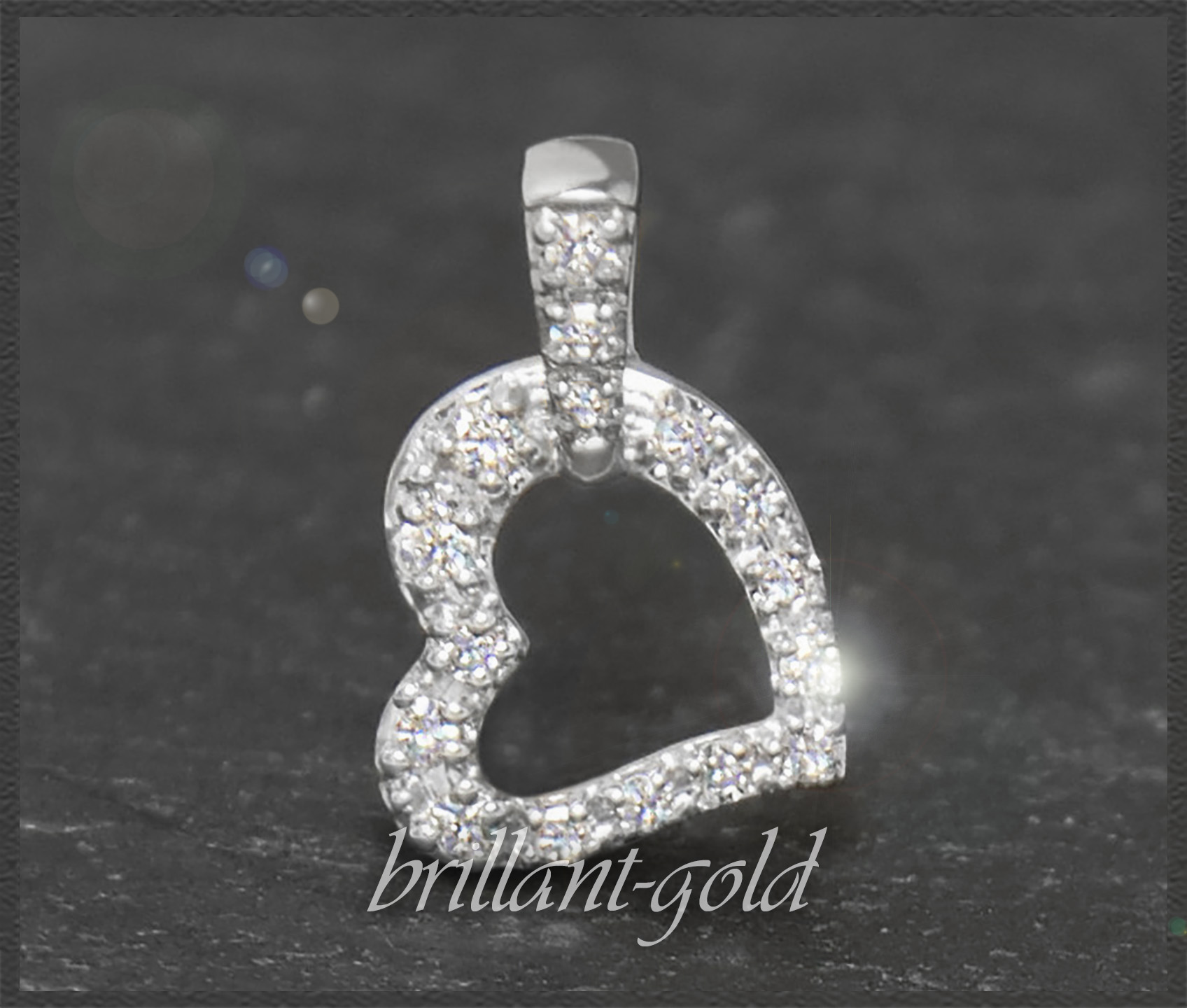 Süßer Herz Anhänger aus Gold mit 16 wunderschön funkelnden Diamanten, zusammen 0,11ct.