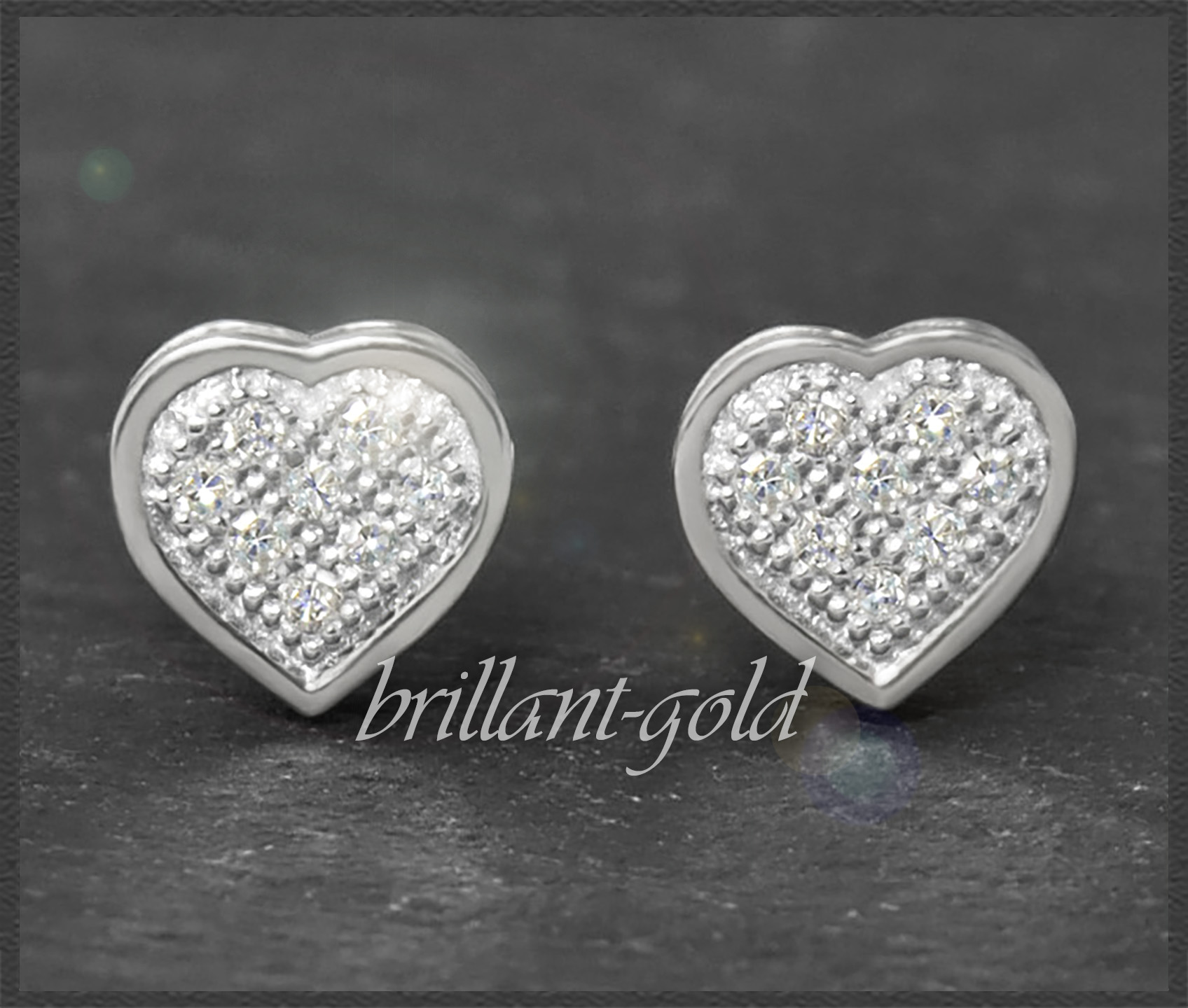 Niedliche Herz Diamant Ohrstecker aus Gold mit 16 wunderschön funkelnden Diamanten.