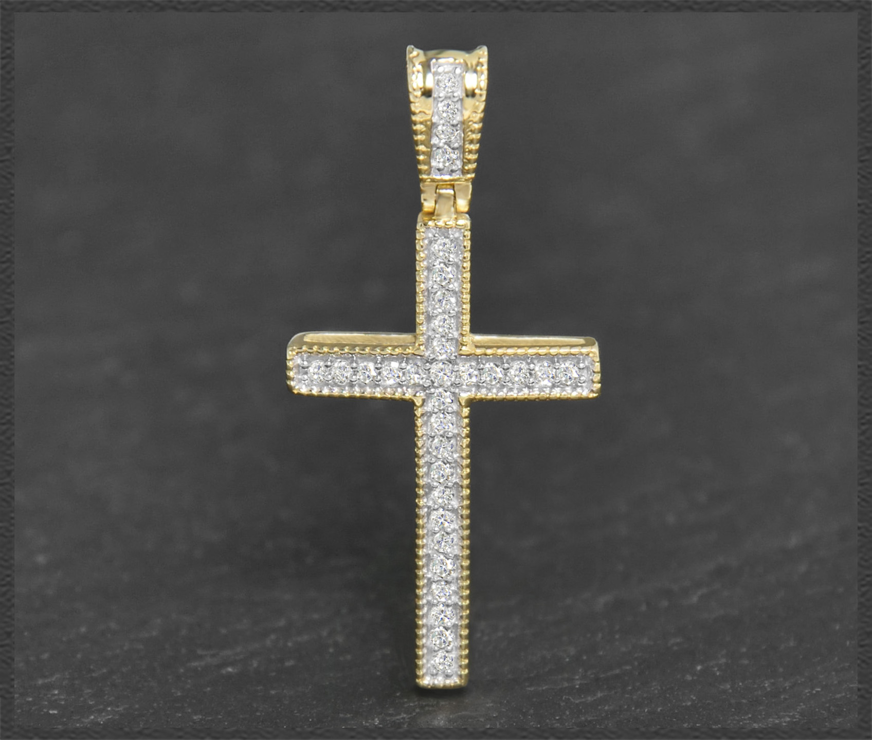Zierlicher Kreuz Anhänger aus Gold mit 0,23ct wunderschön funkelnden Diamanten.