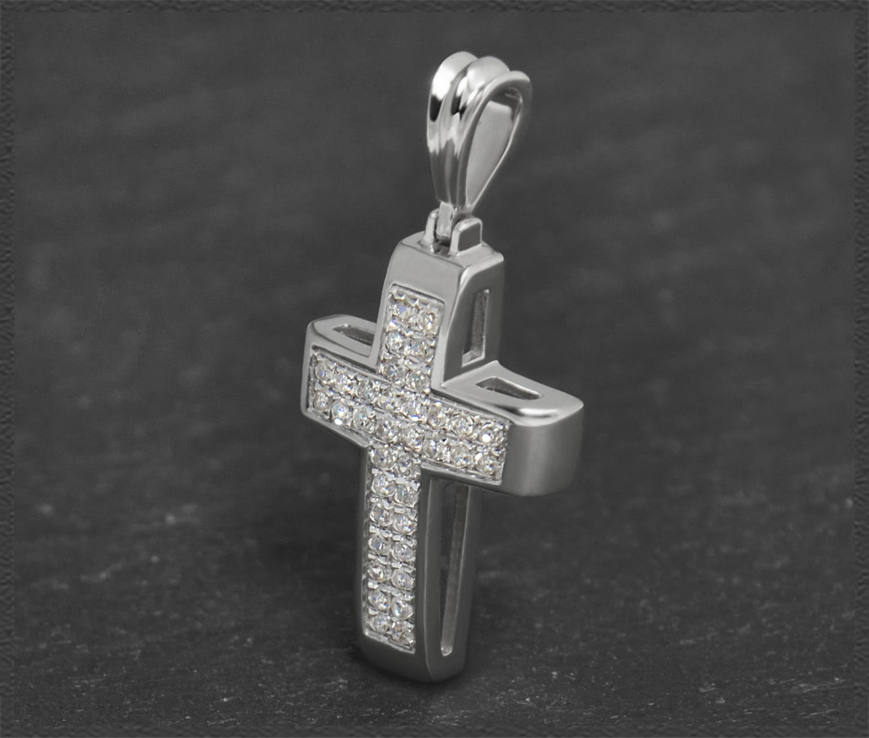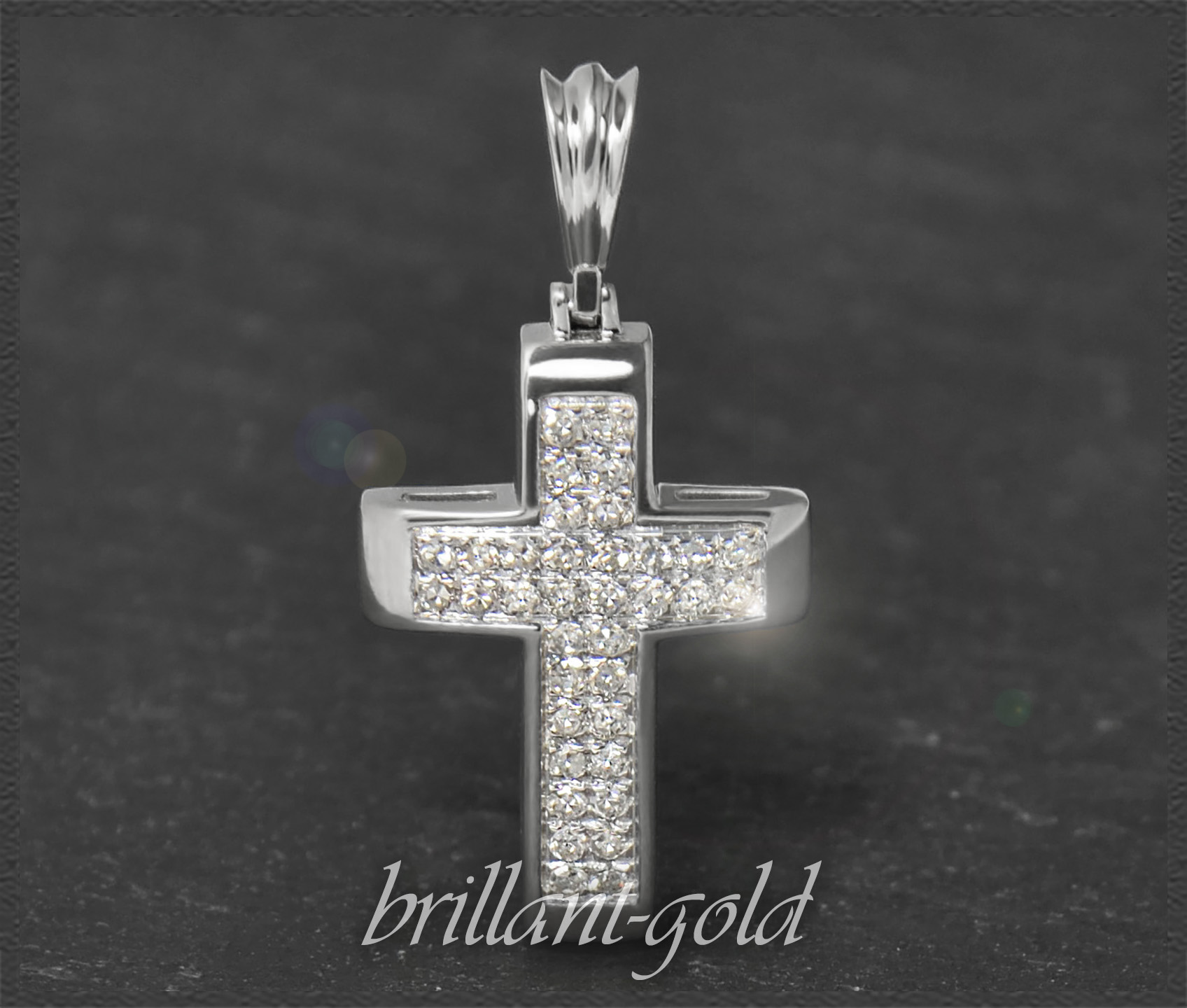 Zierlicher Kreuz Anhänger aus Gold mit 0,25ct wunderschön funkelnden Diamanten.