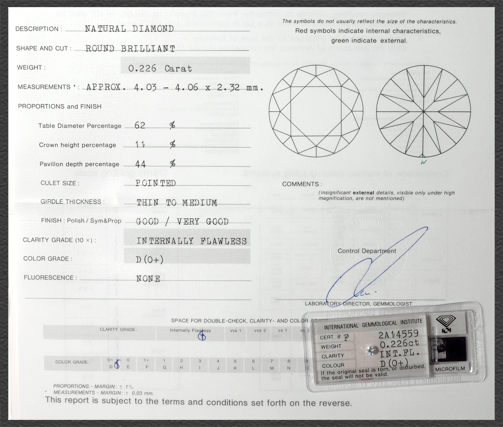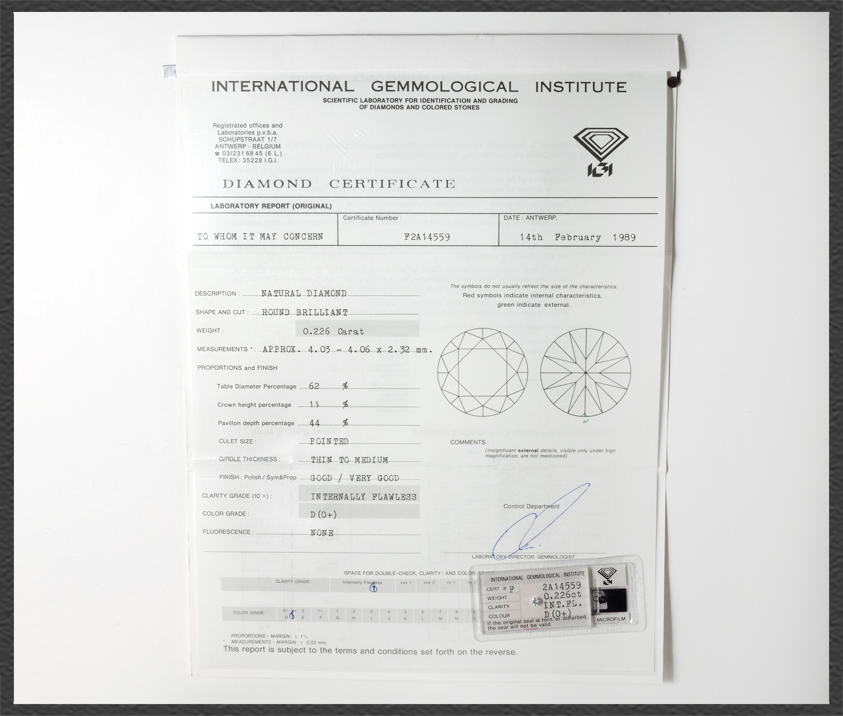 Das originale IGI Zertifikat des eingefassten Diamanten erhalten Sie dazu. Absolute Sicherheit für Sie als Käufer!