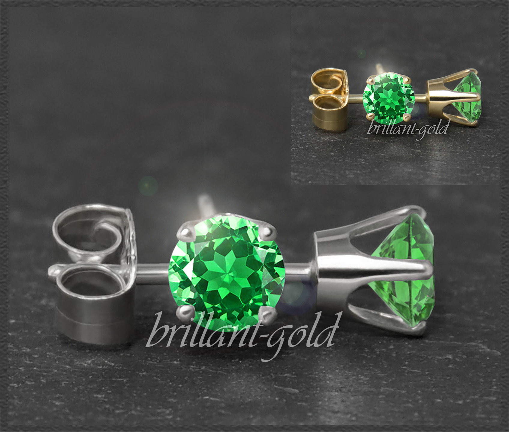 Wunderschöne Topas Ohrstecker aus 585 Gold, mit smaragd-grüner Farbe.