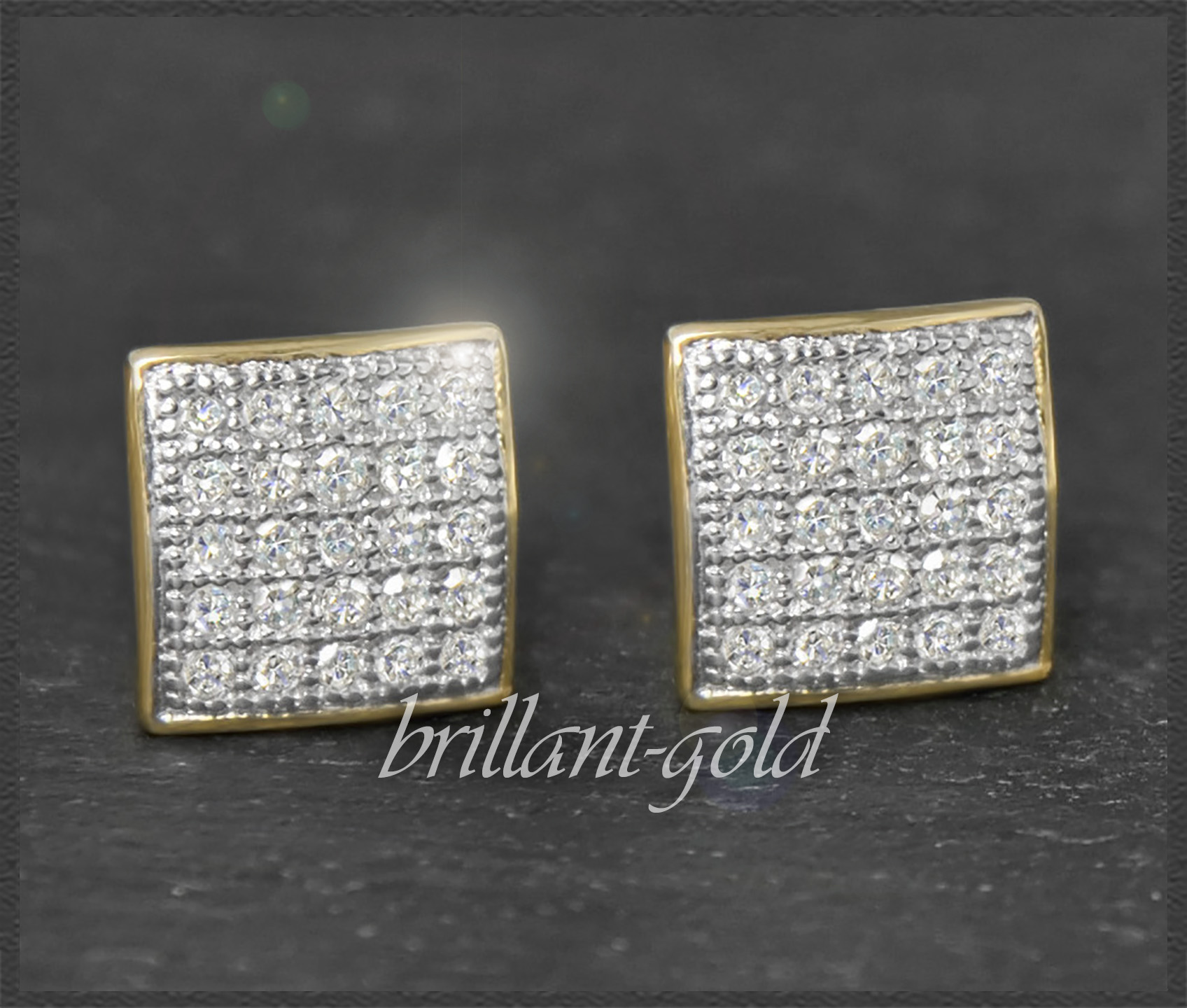 Quadratische Diamant Ohrstecker aus Gold mit 50 wunderschön funkelnden Diamanten.