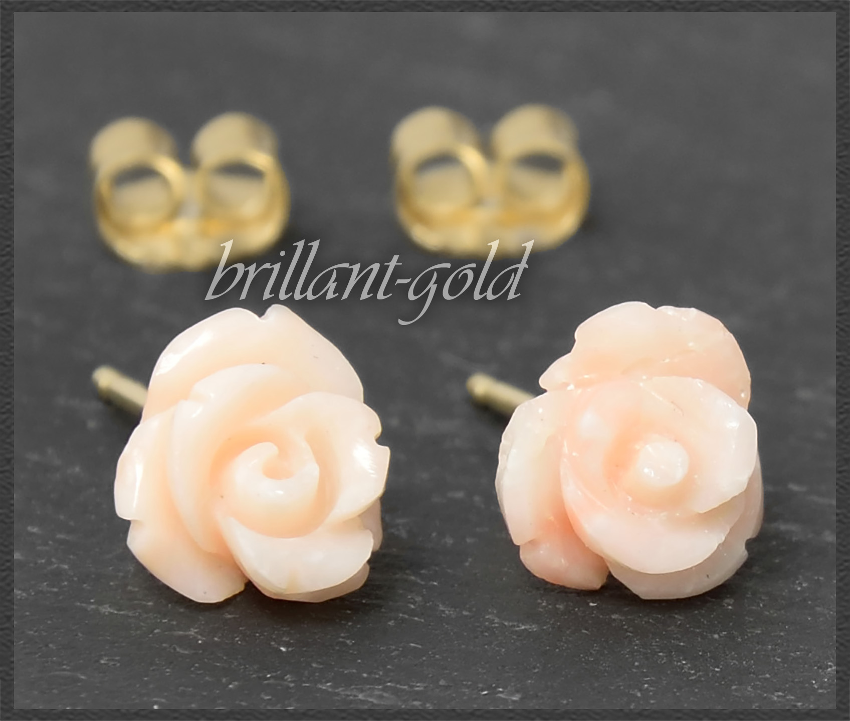 Zauberhafte rosa Rosen Blüten Ohrstecker mit handgeschnitzer, echter Eedelkoralle.
