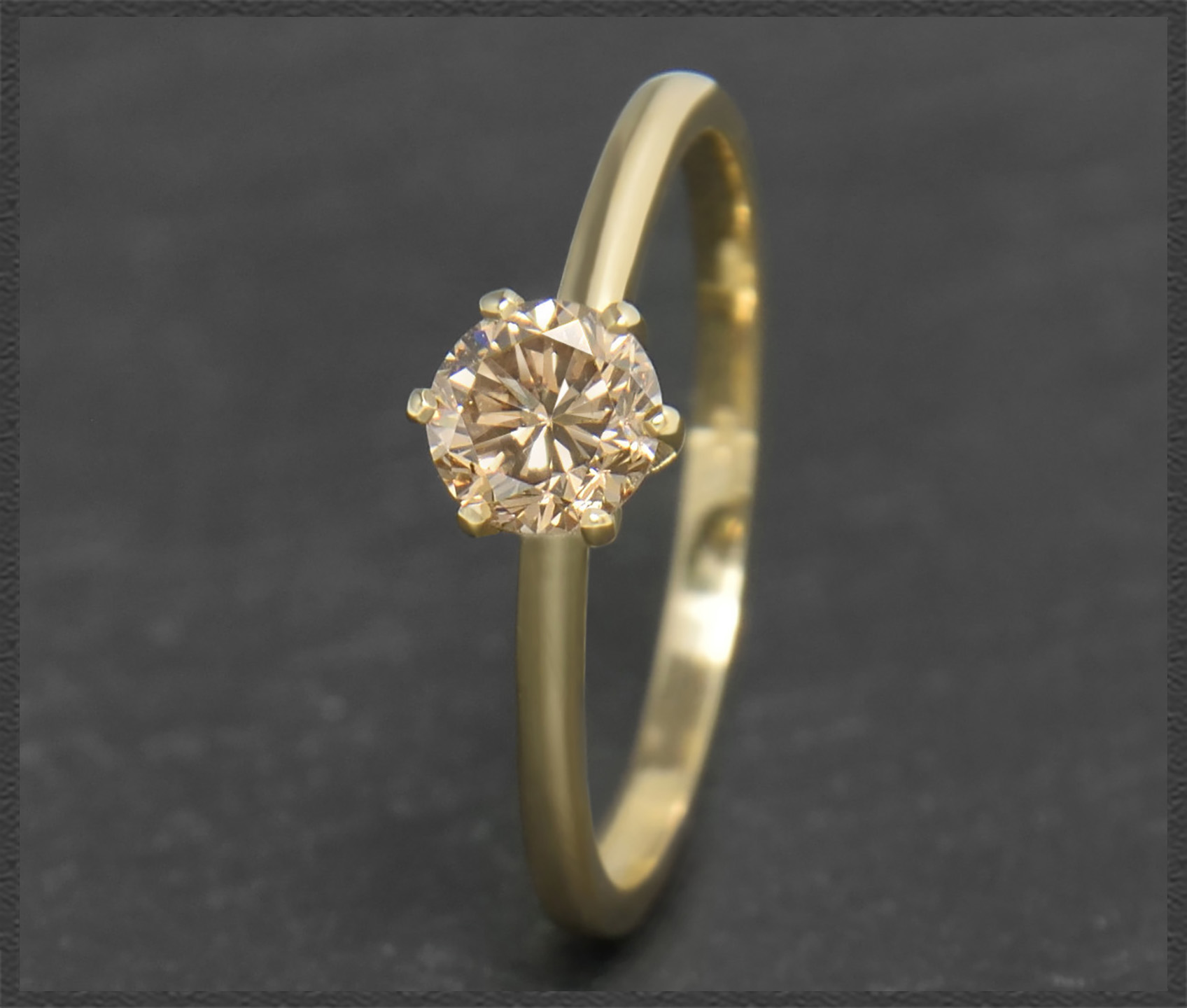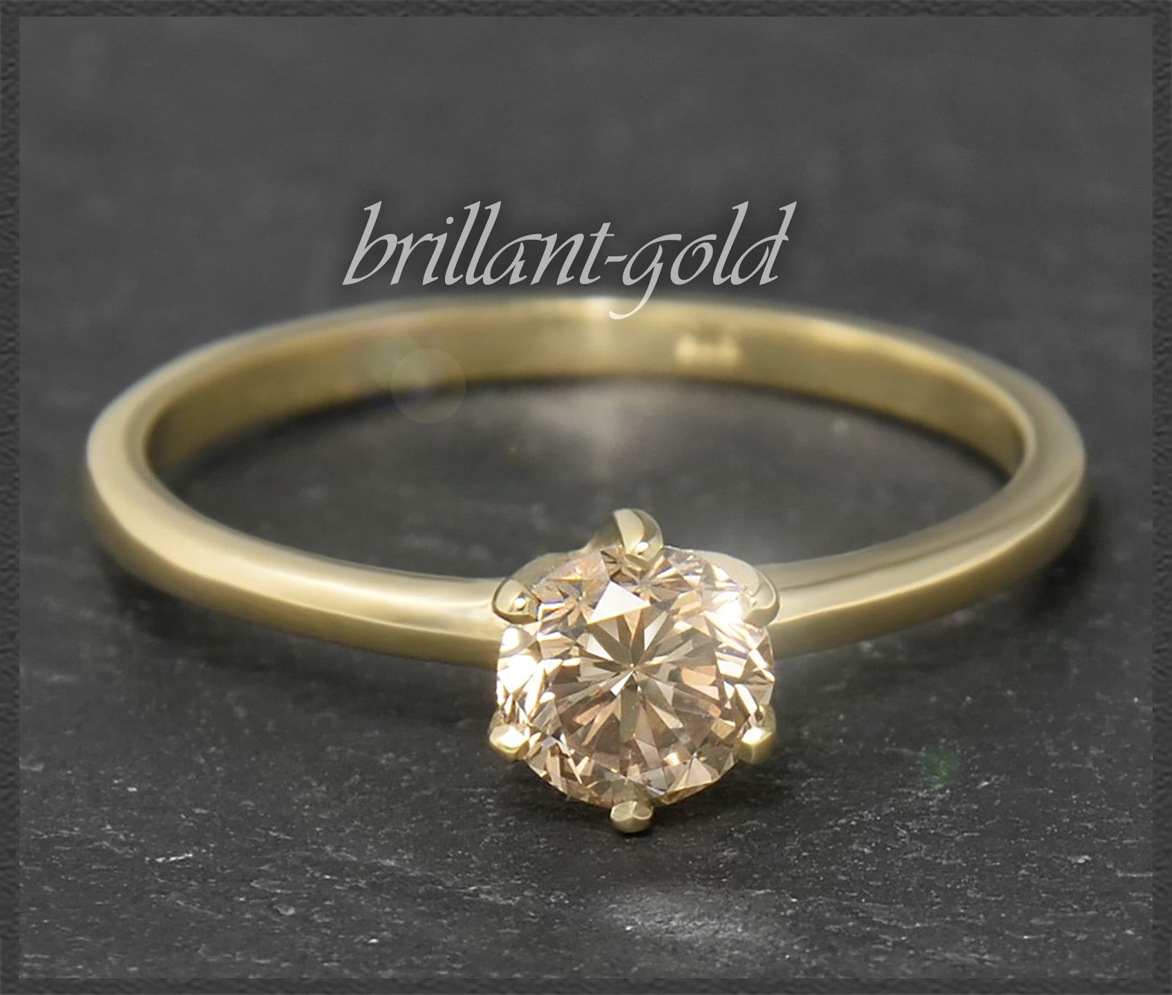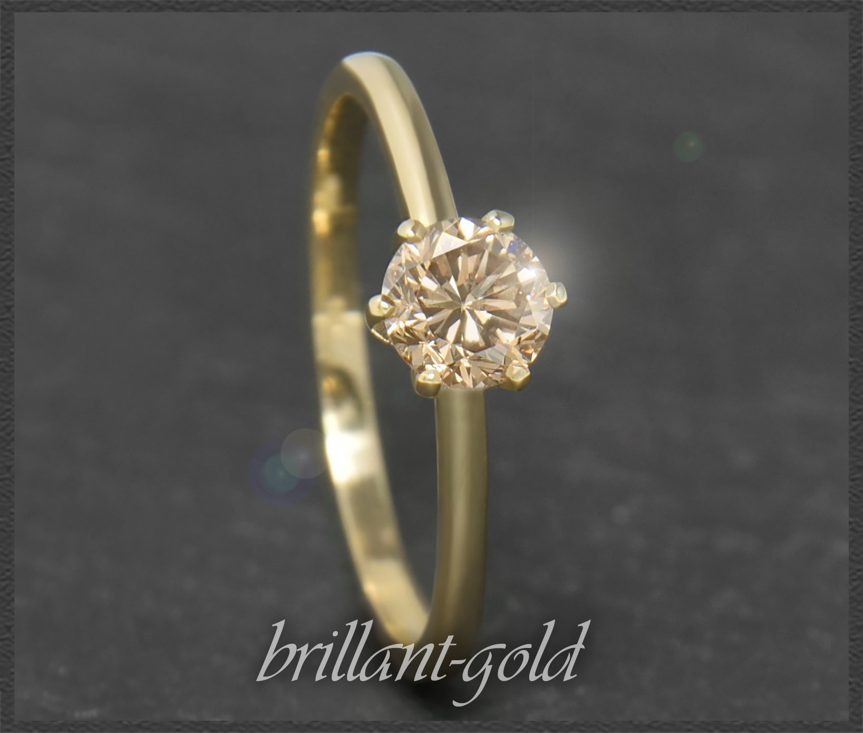 Als Solitär eingefasst ist ein hochwertiger champagner Brillant mit 0,60ct in sehr gutem Brillantschliff! Der Brillant funkelt traumhaft schön im Licht.