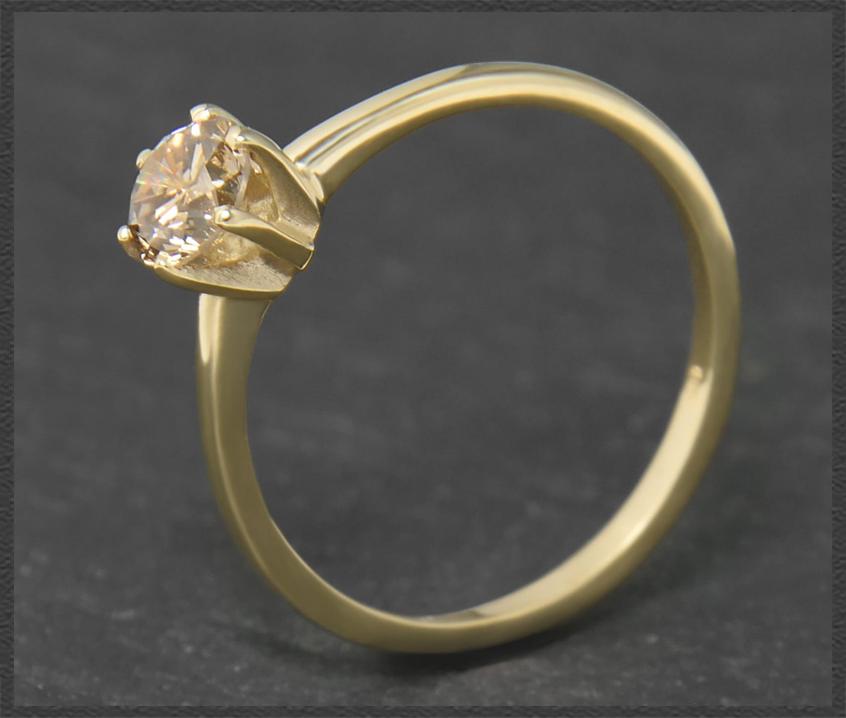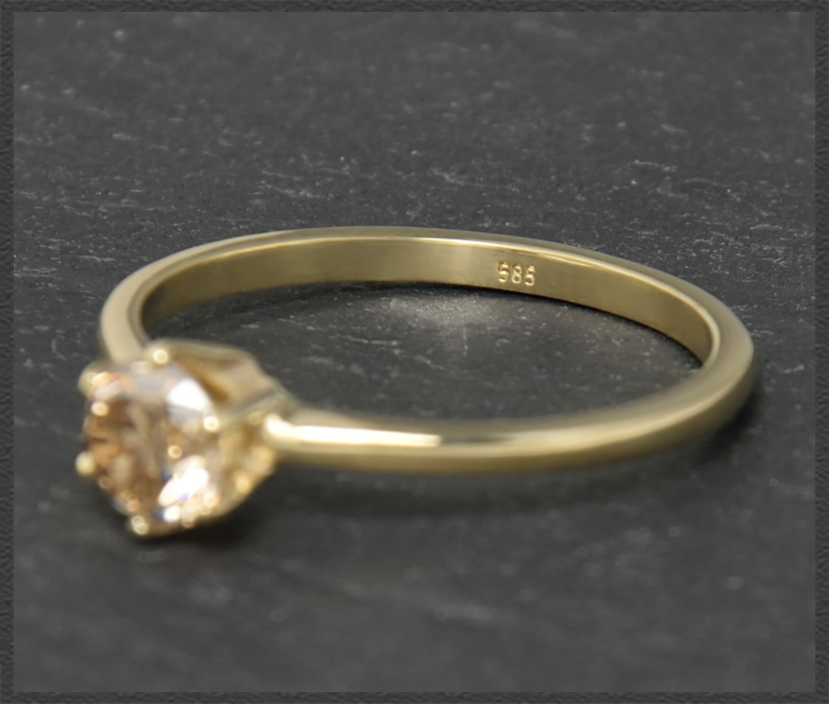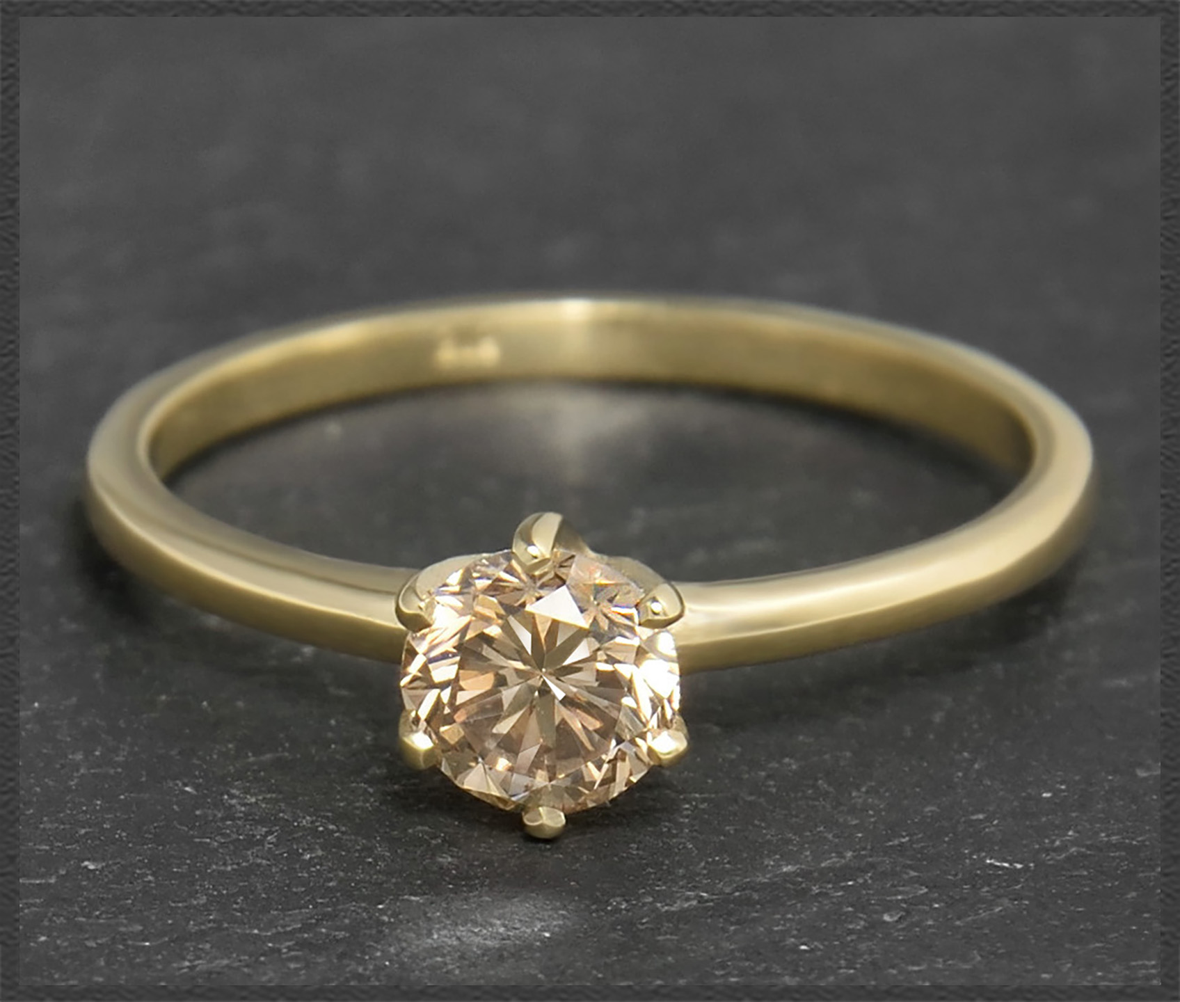 Als Solitär eingefasst ist ein hochwertiger champagner Brillant mit 0,60ct in sehr gutem Brillantschliff! Der Brillant funkelt traumhaft schön im Licht.