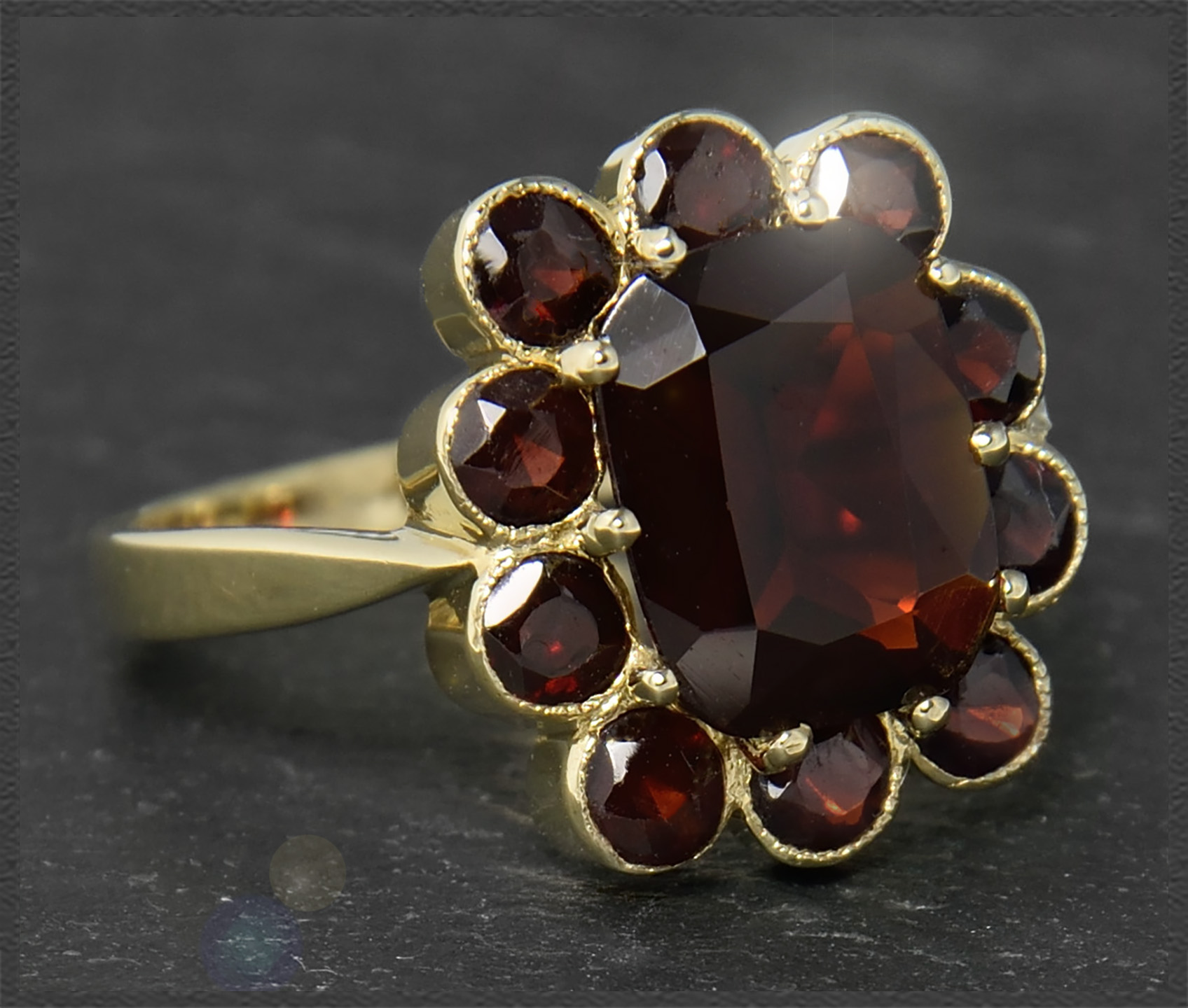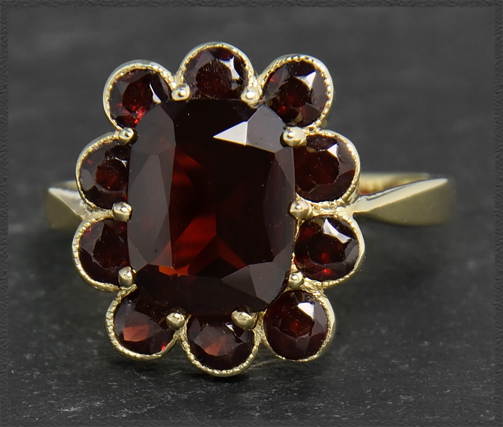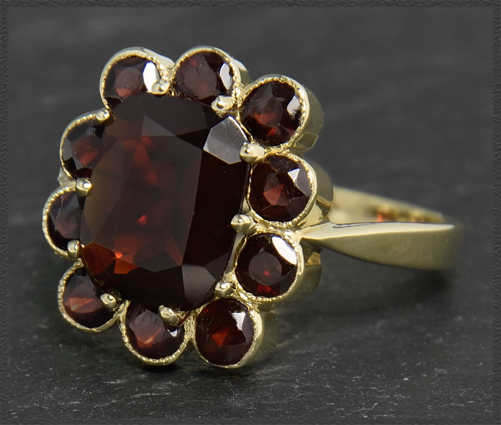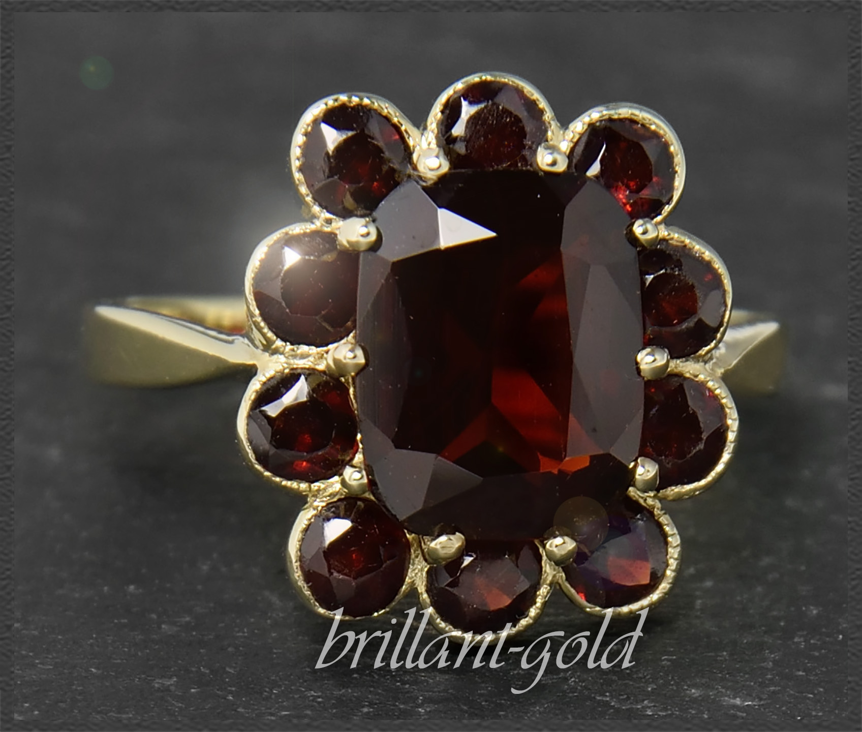 Zauberhafter 333 Gold Damen-Ring mit 4,70ct intensiv roten Granaten.