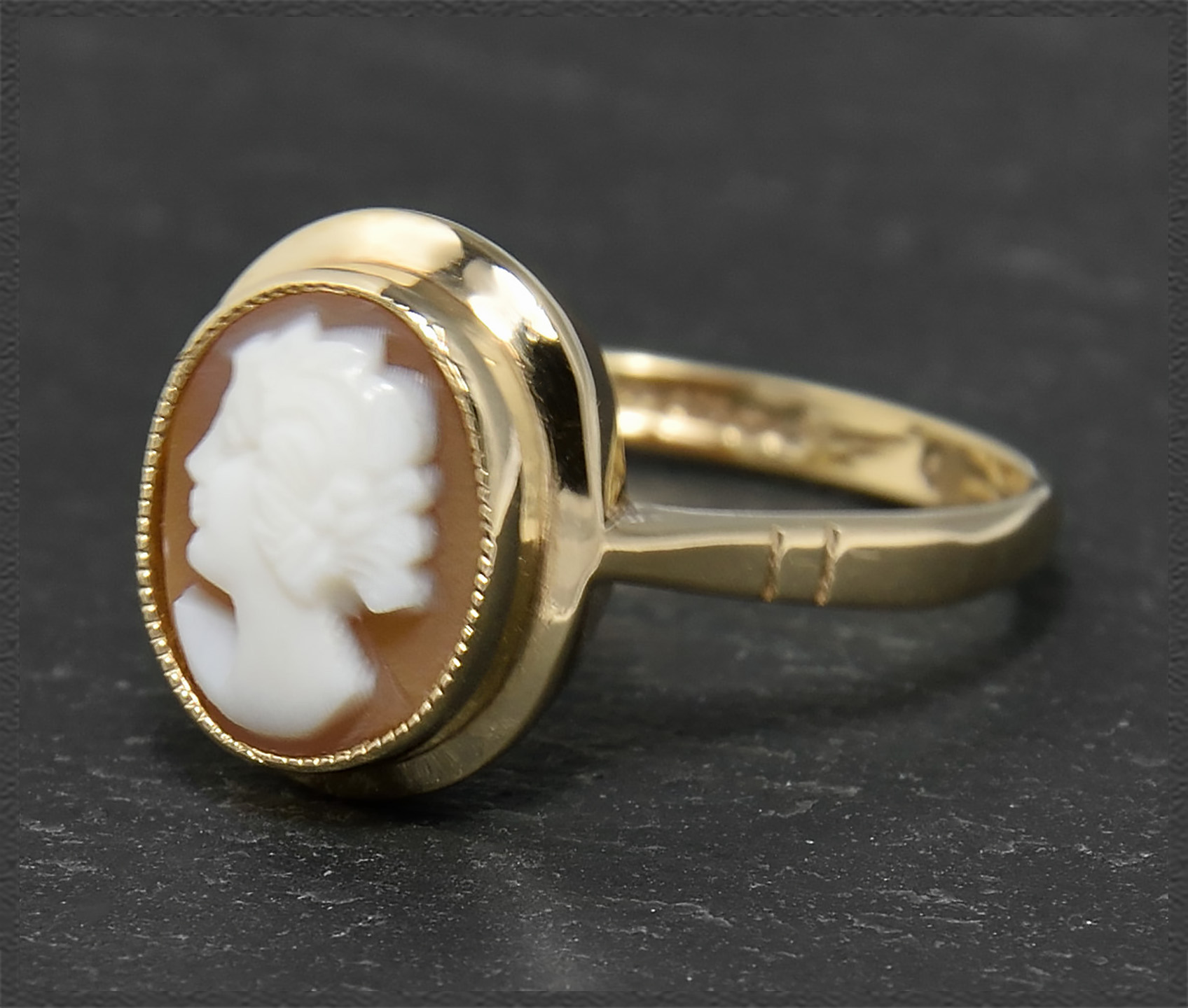 Antiker Solitär Ring mit einer Gemme, gefertigt vom Goldschmied in Handarbeit (Goldschmied-Punze im Ring) um ca 1920.