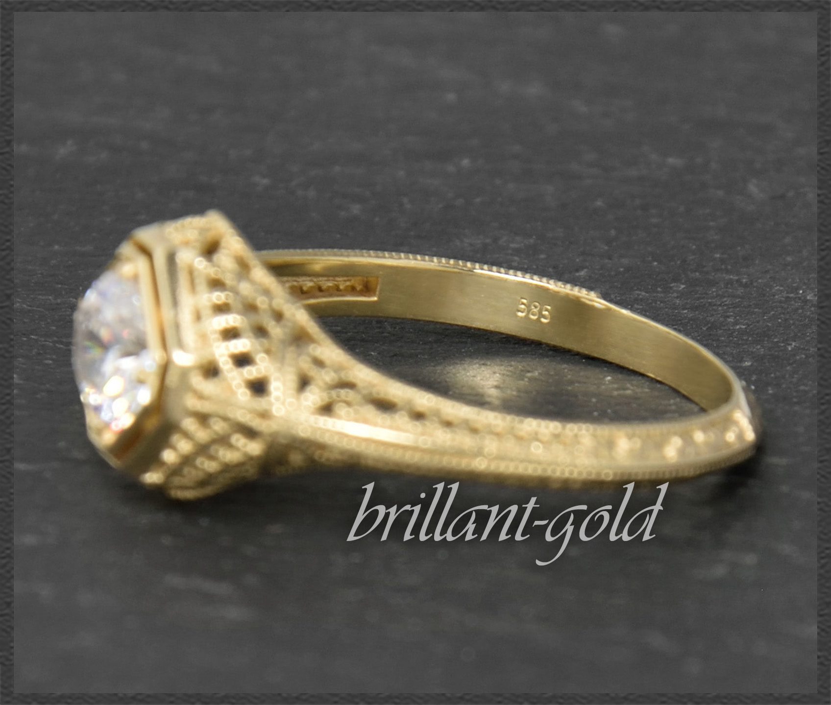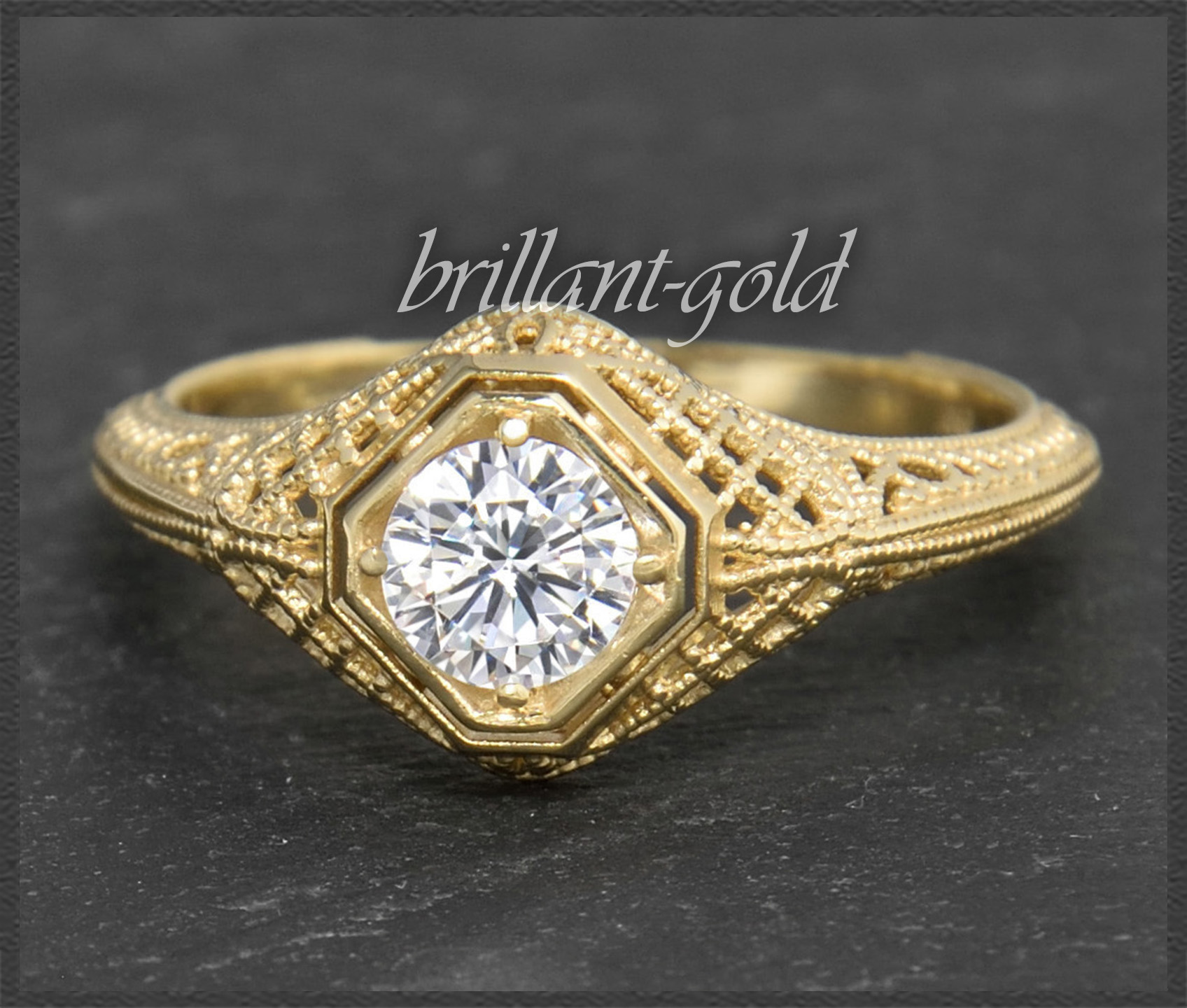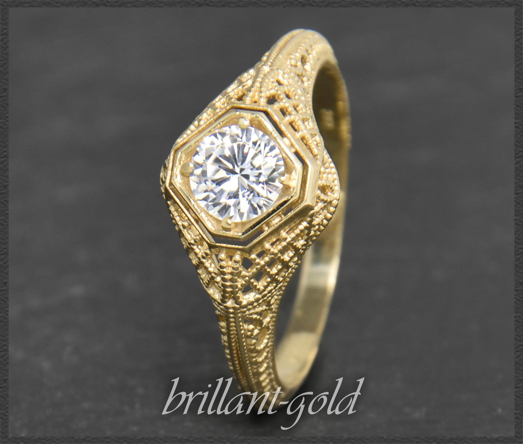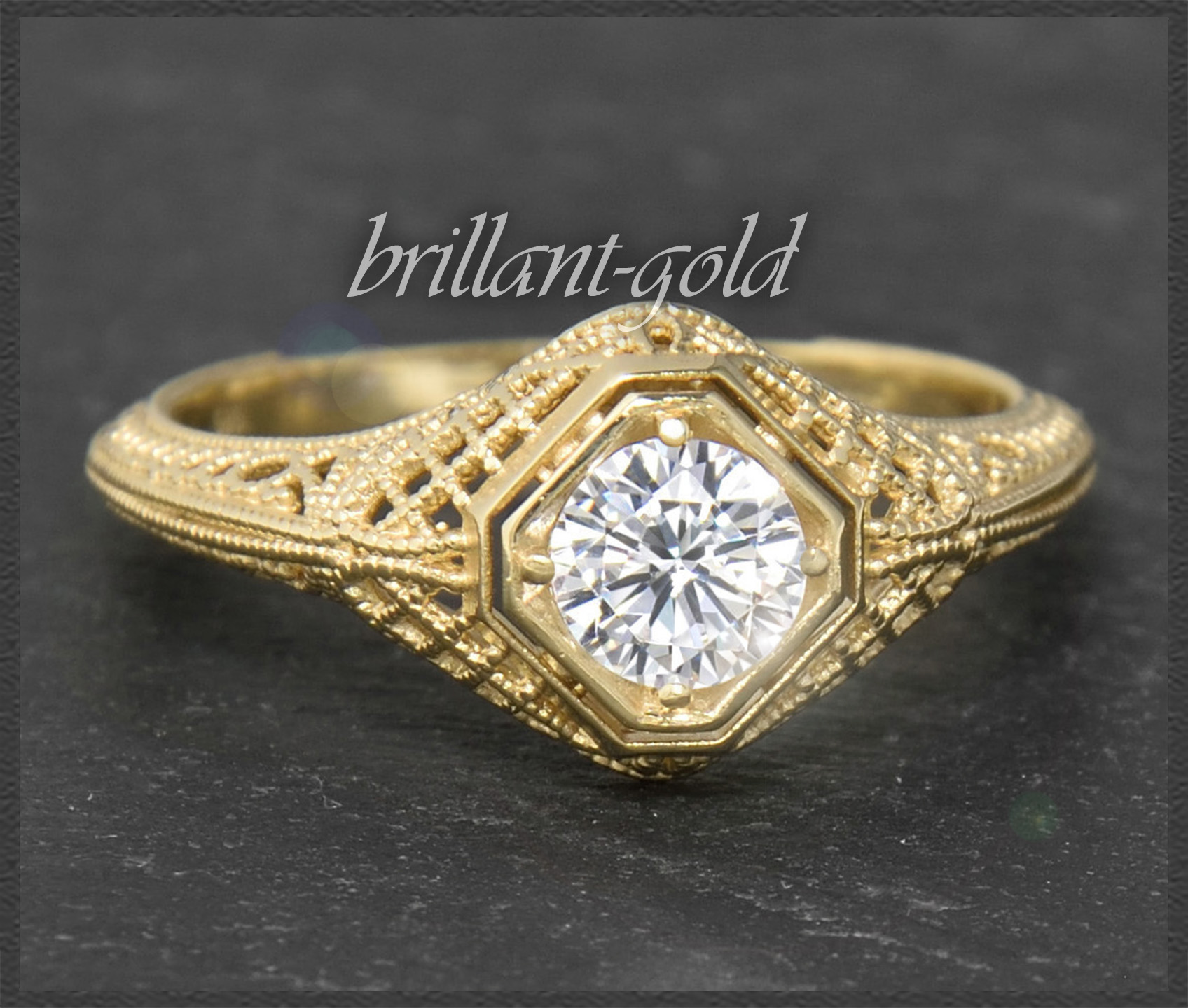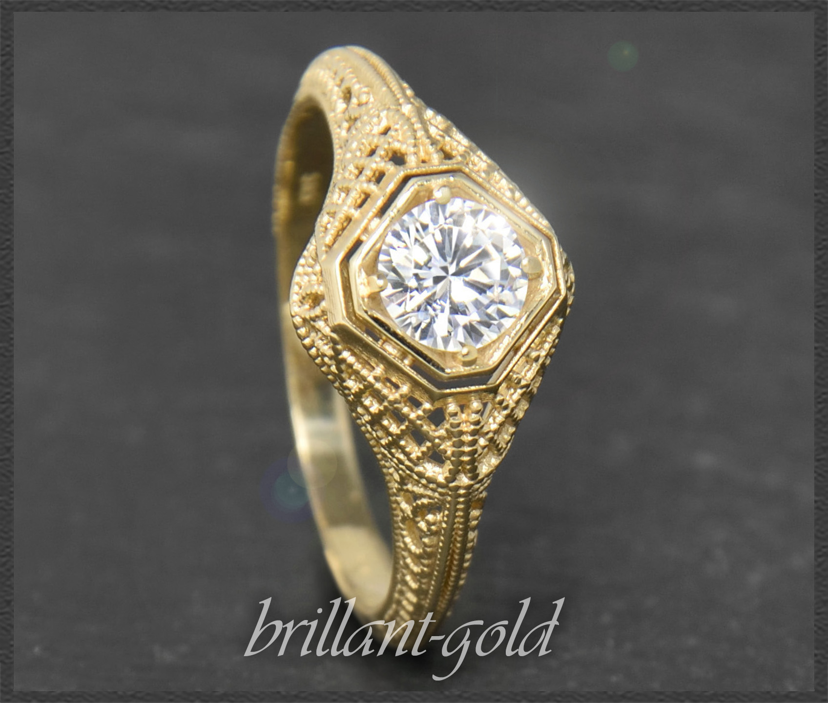Eleganter Ring im Jugendstil Design mit einem hochwertigen 0,63ct Brillant Solitär mit wunderschöner Brillanz.