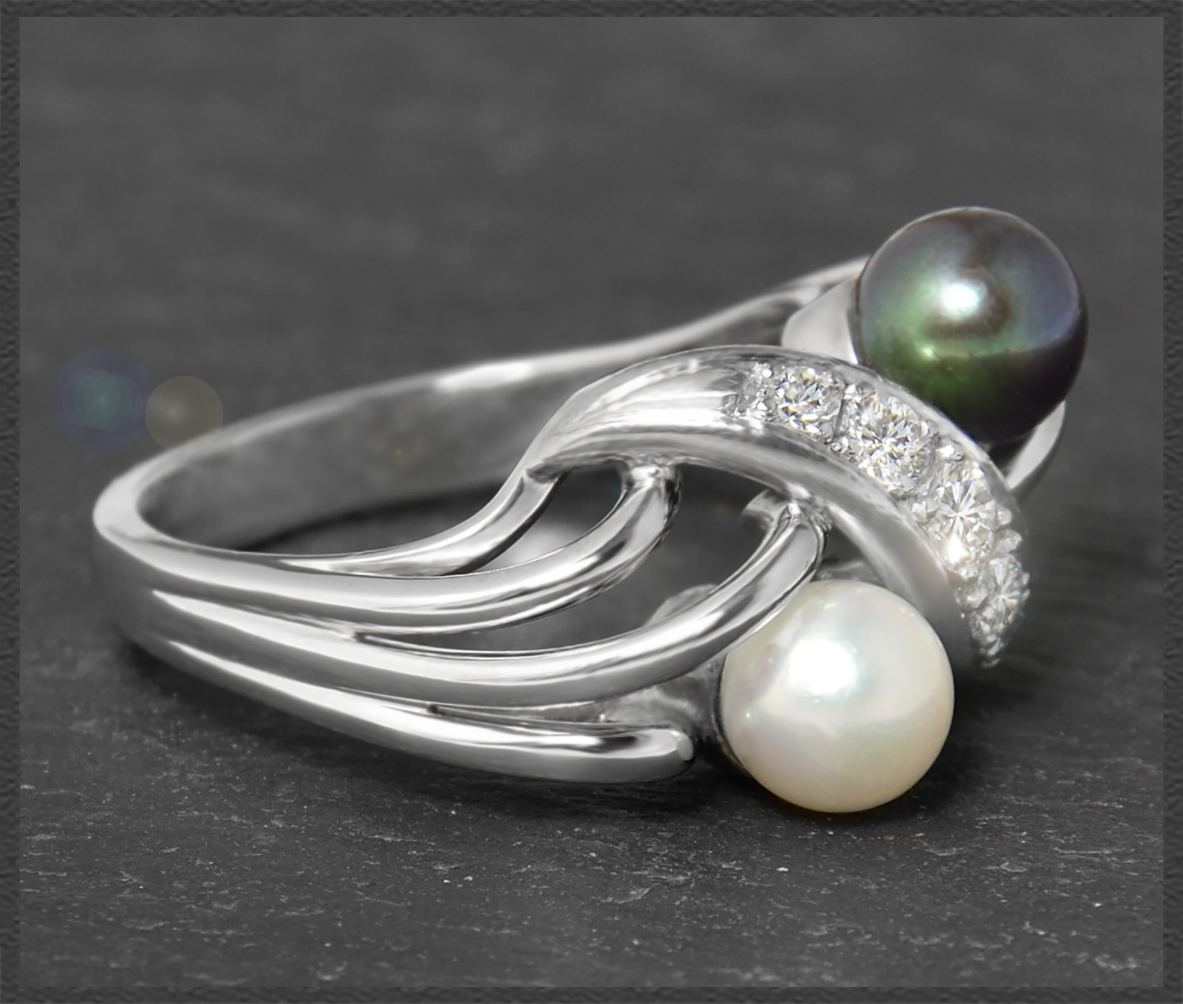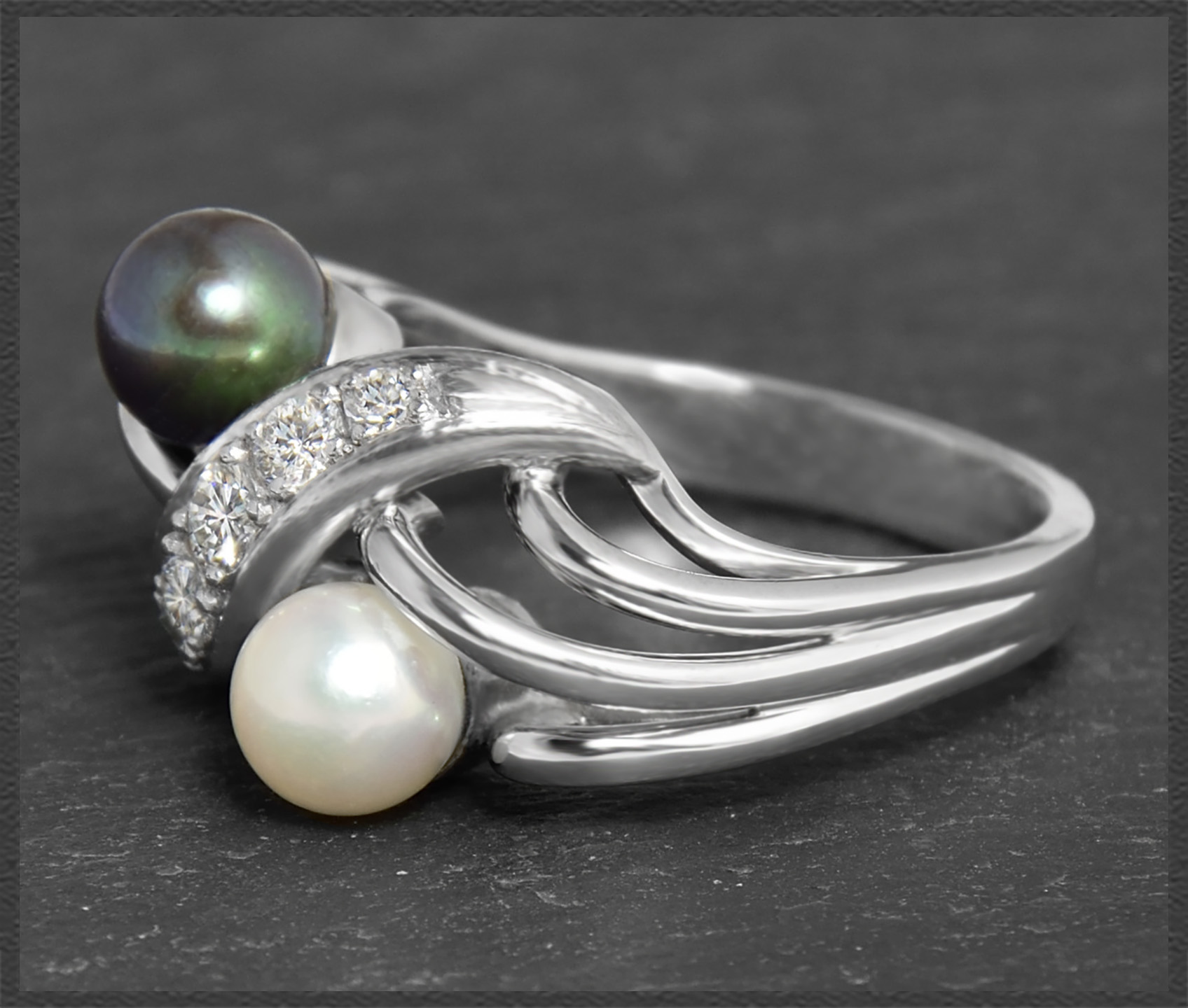Wunderschöner Brillant & Perlen Ring mit lupenreinen Diamanten und zwei Perlen (eine Tahiti Perle & eine Akoya Perle).