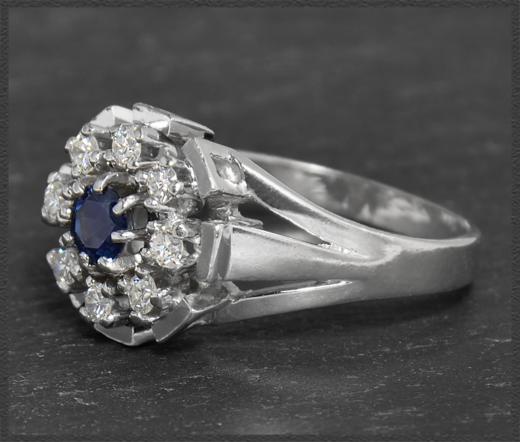Wunderschöner 0,93ct Diamant & Saphir Cocktail Ring, Vintage Handarbeit um 1950.