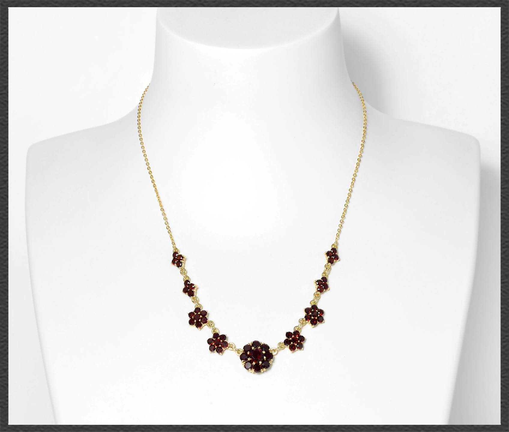 Vintage Granat Collier & Halskette mit 5,75ct hochwertigen intensiv roten Granaten.