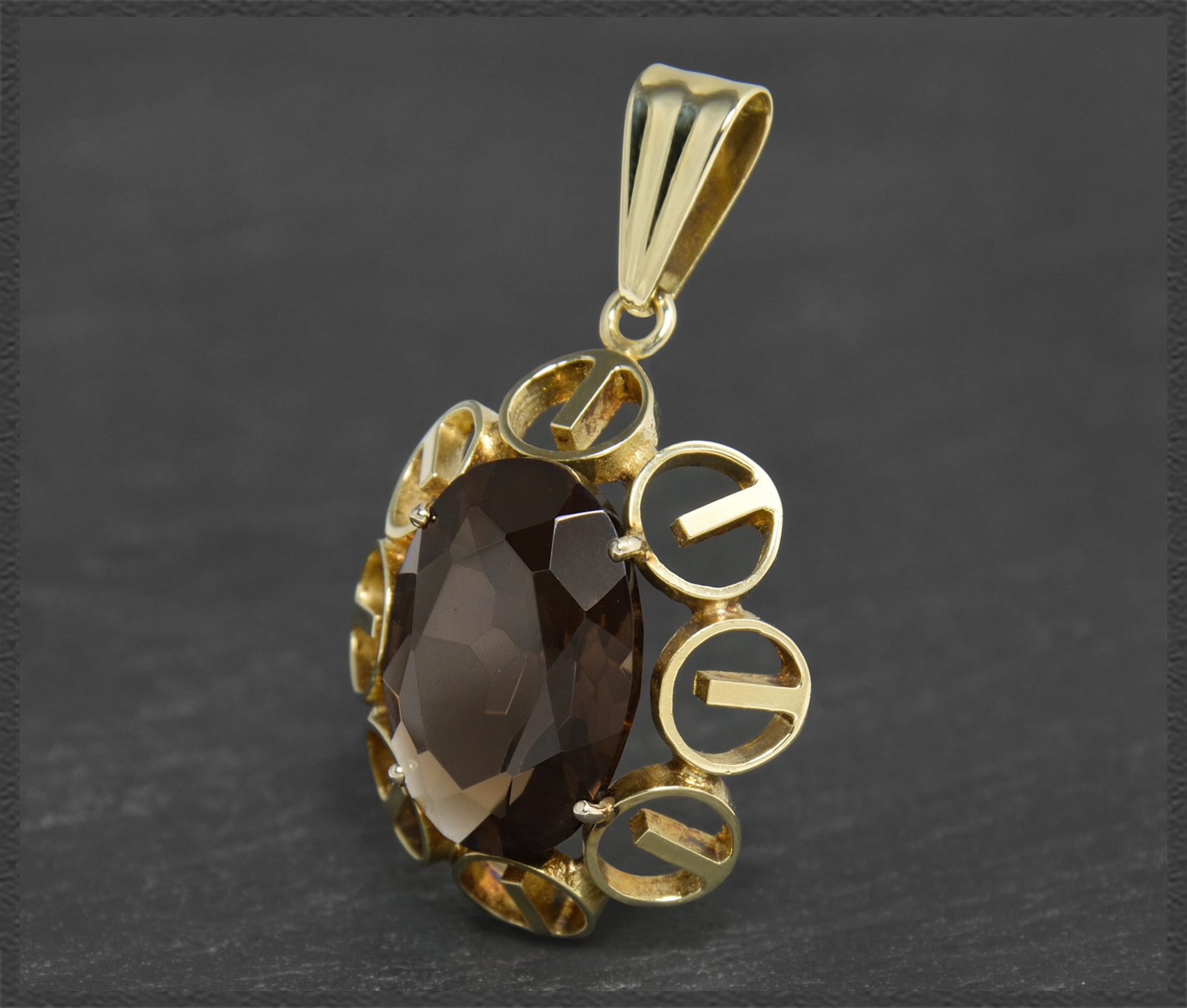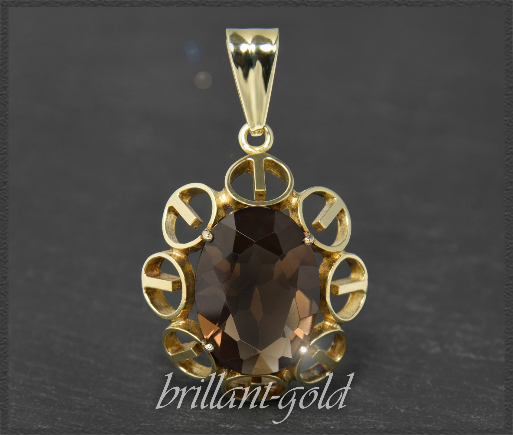 Großer Vintage Damen Anhänger mit einem ca. 11ct Rauchquarz in hervorragener Qualität (VVS).