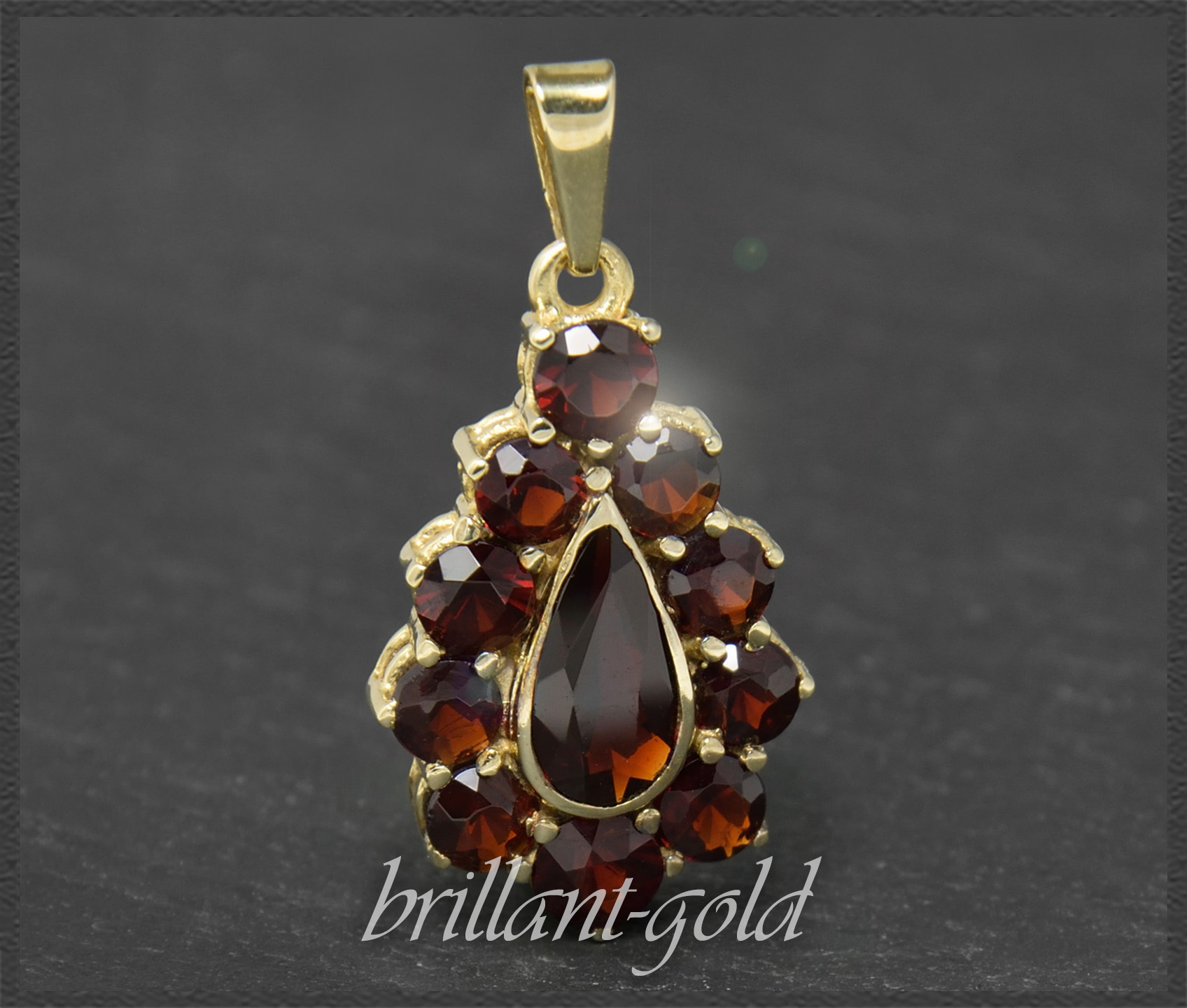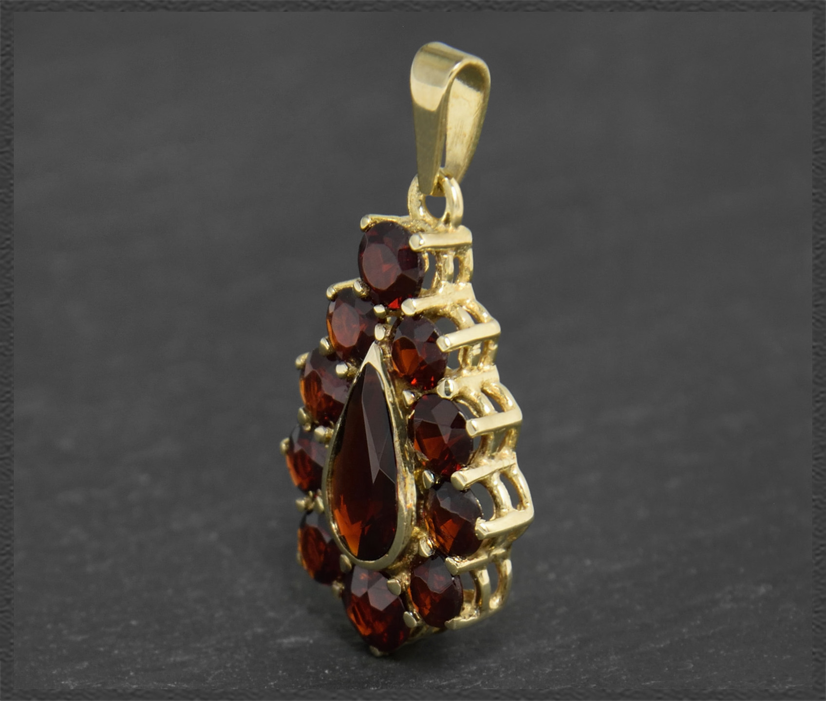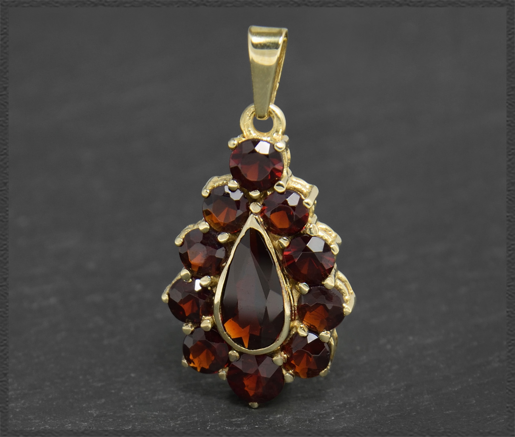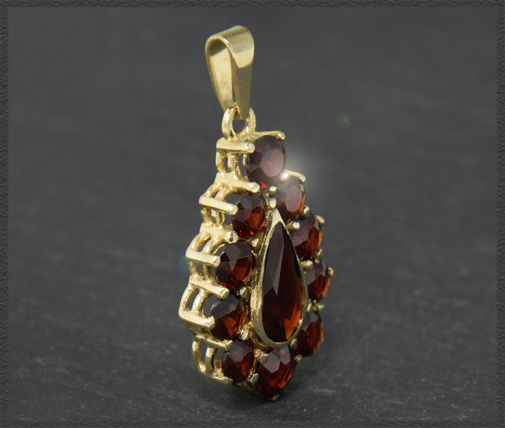 Vintage (um 1960) 4,40ct Granat Anhänger, gefertigt in Handarbeit aus massivem 333 Gelbgold.