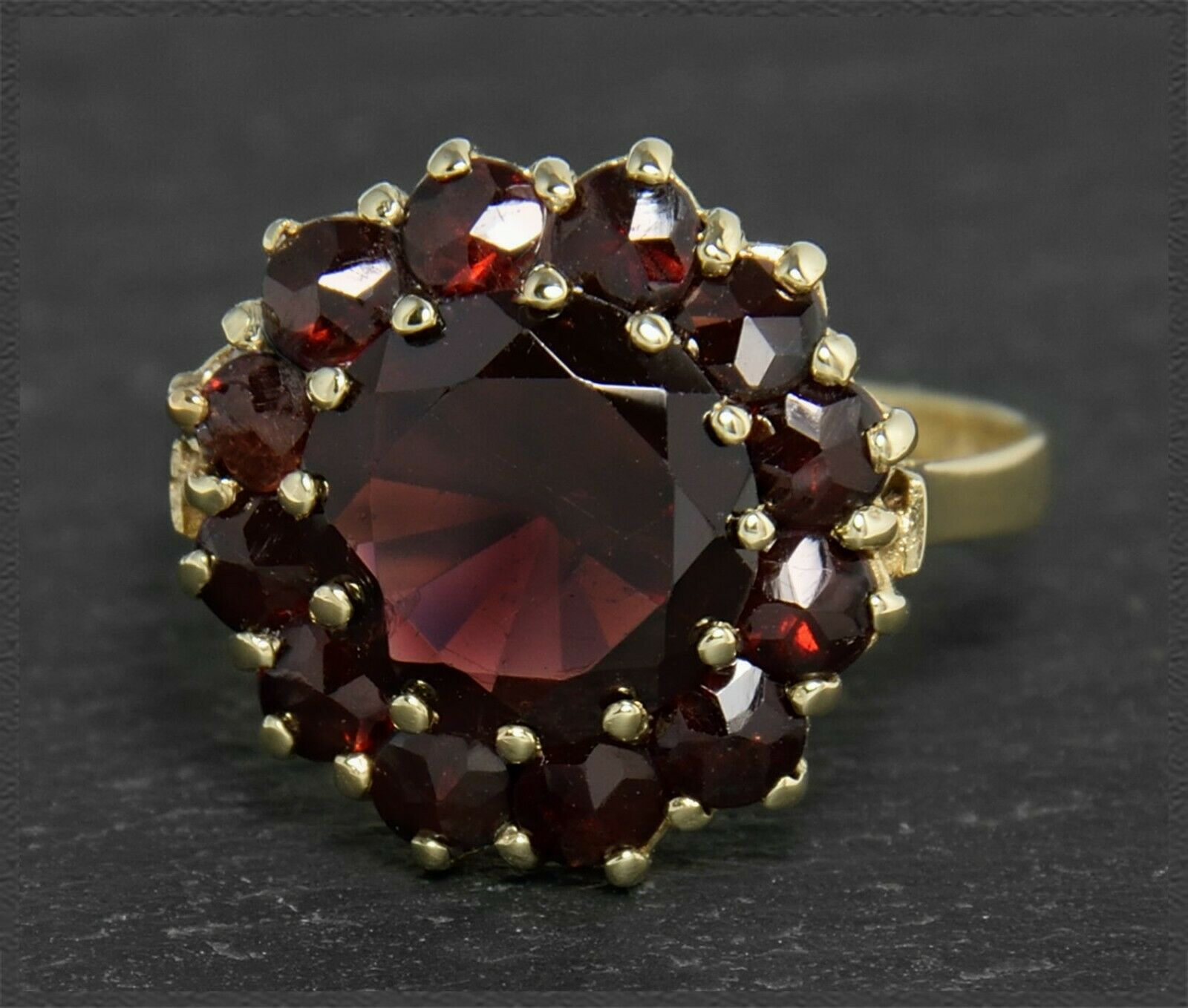 8,30ct Vintage Granat Cocktailring mit einem großen, roten 10mm Granat.