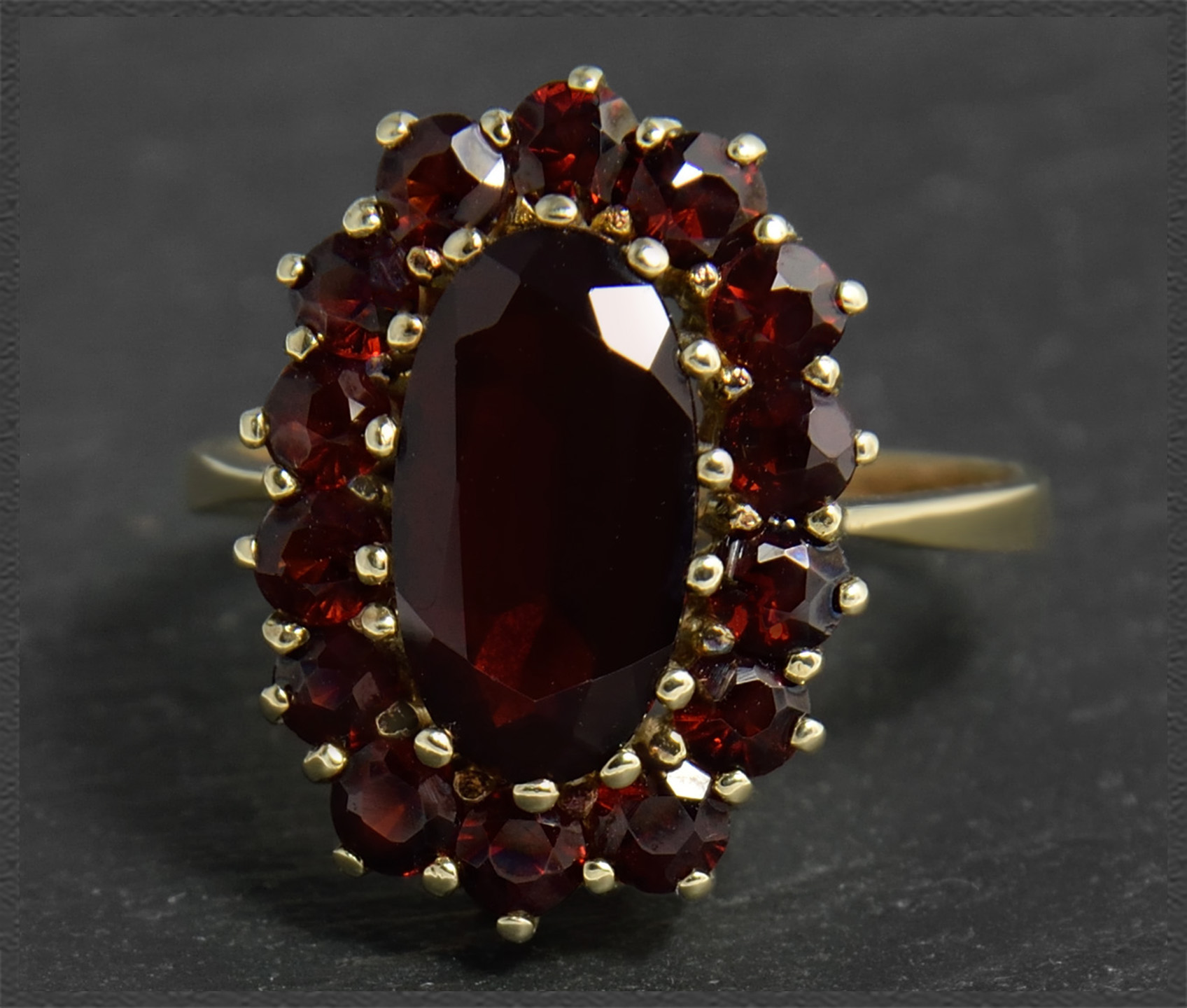 Vintage Ring, 5,40ct Granate, 333 Gold, um 1960